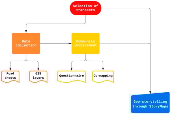 Methodological flowchart illustrating the sequence of transect selection, data collection, community involvement, and digital integration through StoryMaps (elaboration of I. Pistone).
