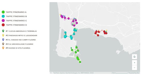 This sequential design aimed to ensure transparency and repeatability, following established protocols in participatory GIS. The experiential transect thus translates into the selection of potential itineraries that can facilitate an understanding of the Phlegraean landscape, with a view to soft mobility but also to enhance its unique features. In this regard, the geospatial study is enriched by appropriate collaborative mapping actions aimed at expanding the database and involving users in the analytical and operational processes.