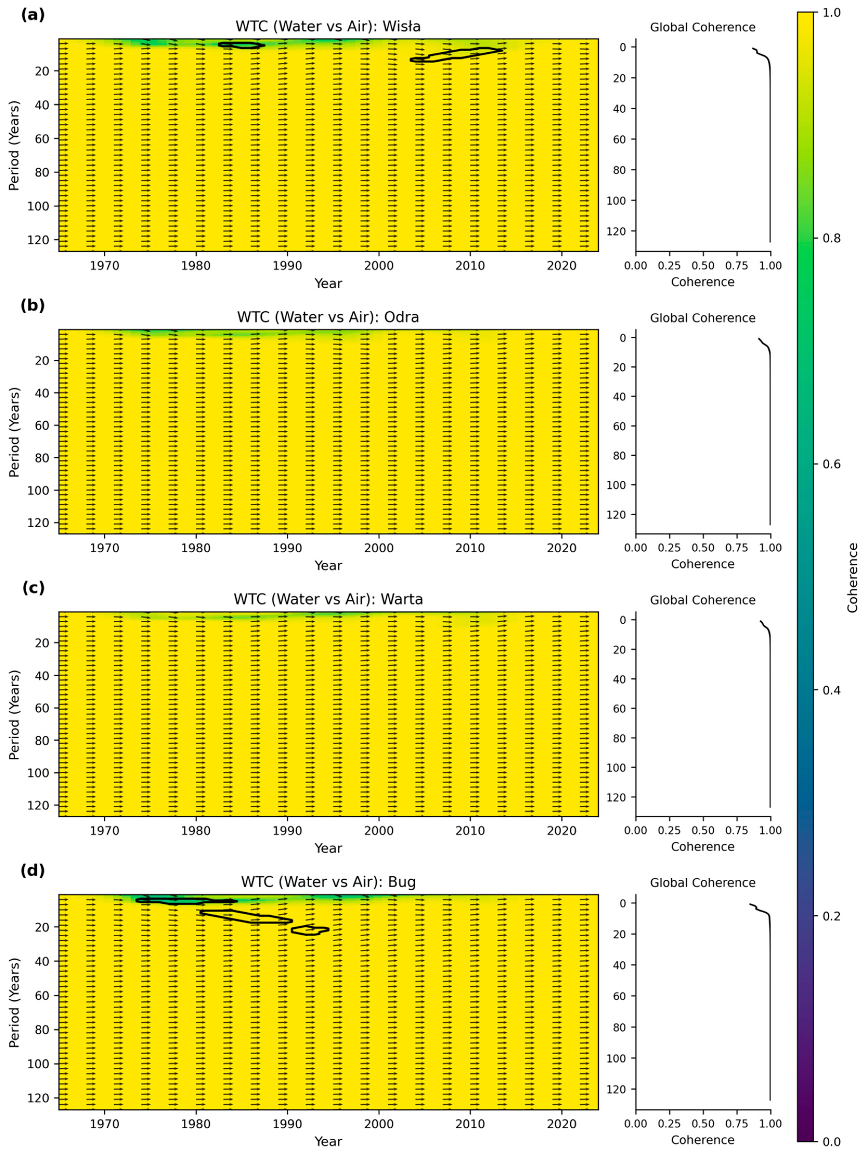 - Maraun, D.; Kurths, J. Cross wavelet analysis: Significance testing and pitfalls. Nonlinear Process. Geophys. 2004, 11, 505–514. [Google Scholar] [CrossRef]