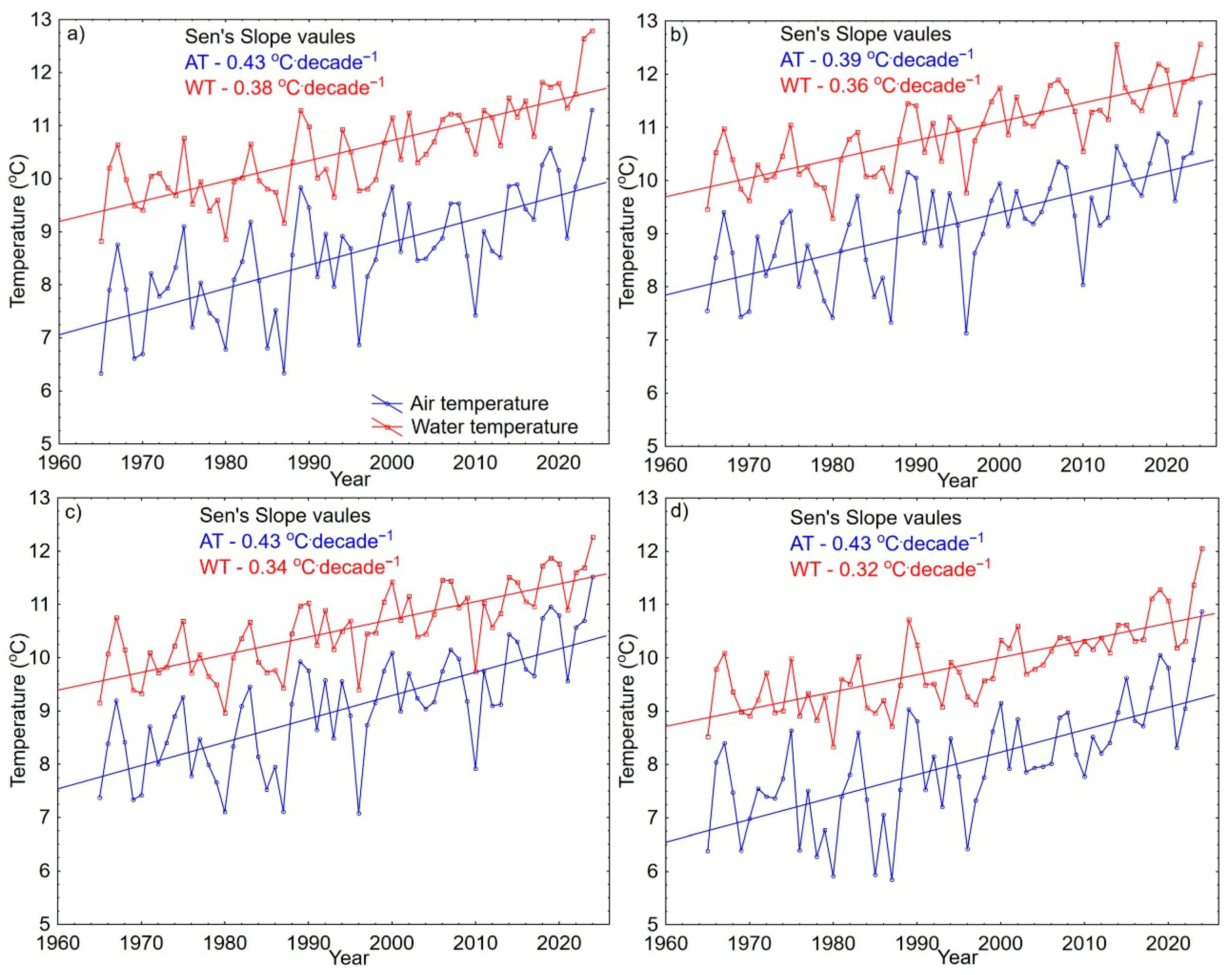 Chicago/Turabian StylePtak, Mariusz, Mariusz Sojka, Katarzyna Szyga-Pluta, and Teerachai Amnuaylojaroen. 2025. "Air and Water Temperature Relationships in Major Polish Rivers and Their Long-Term Changes" Sustainability 17, no. 23: 10737. https://doi.org/10.3390/su172310737