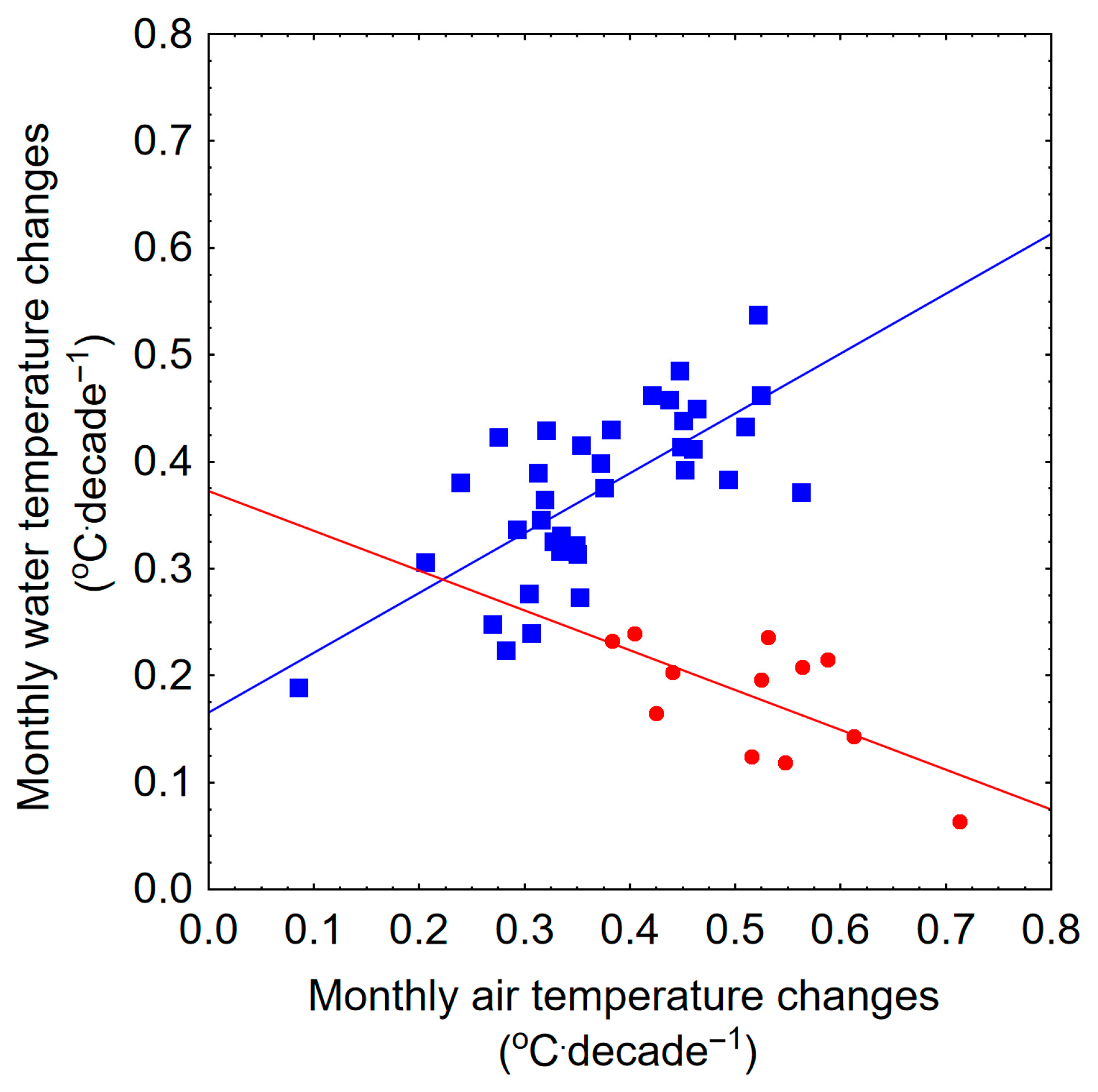 Air and Water Temperature Relationships in Major Polish Rivers and Their Long-Term Changes
