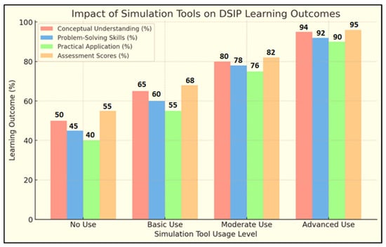 The graph in Figure 2 illustrates how the increasing use of simulation tools (such as MATLAB, Python, and DSP simulators) influences key learning outcomes in Digital Signal and Image Processing (DSIP) education.