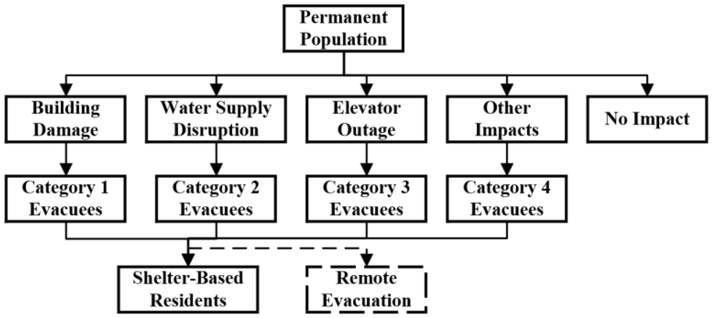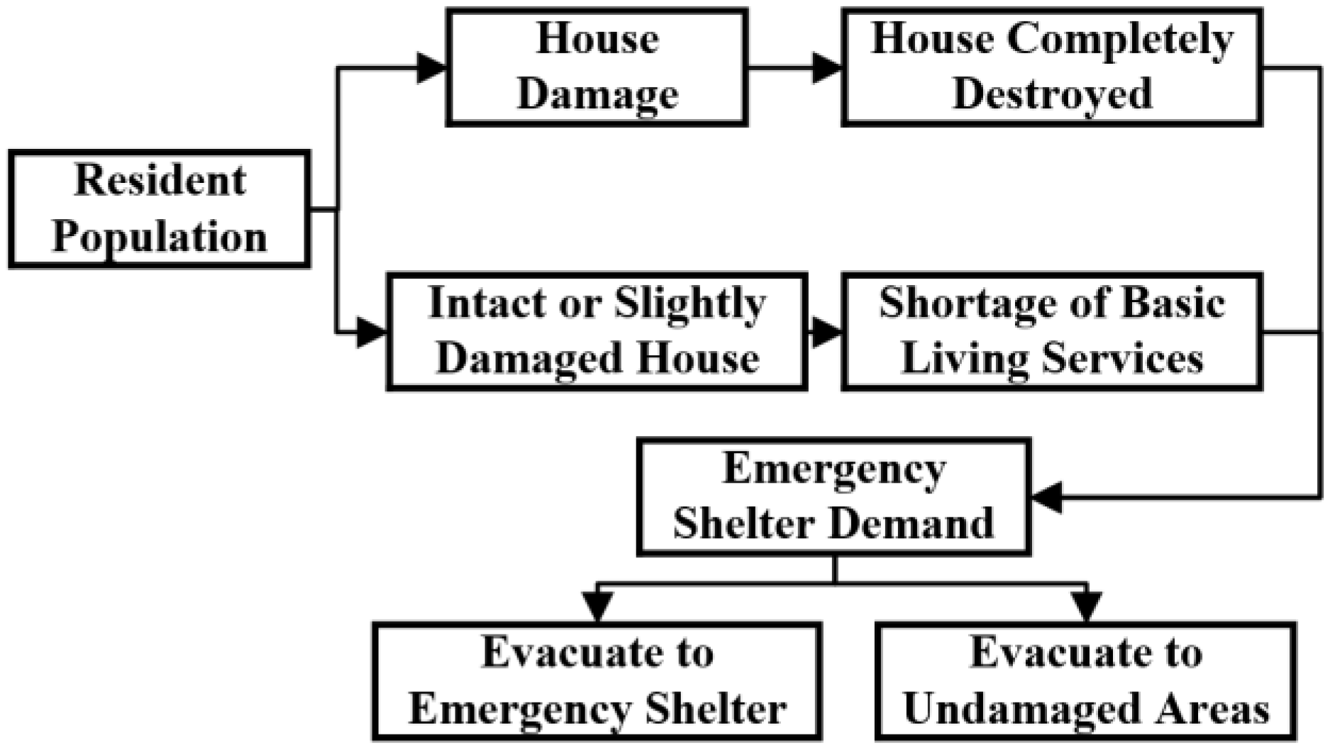 Figure 3. The diagram illustrates the integration of engineering and human factors: for residents whose homes are completely destroyed or severely damaged, the evacuation rates