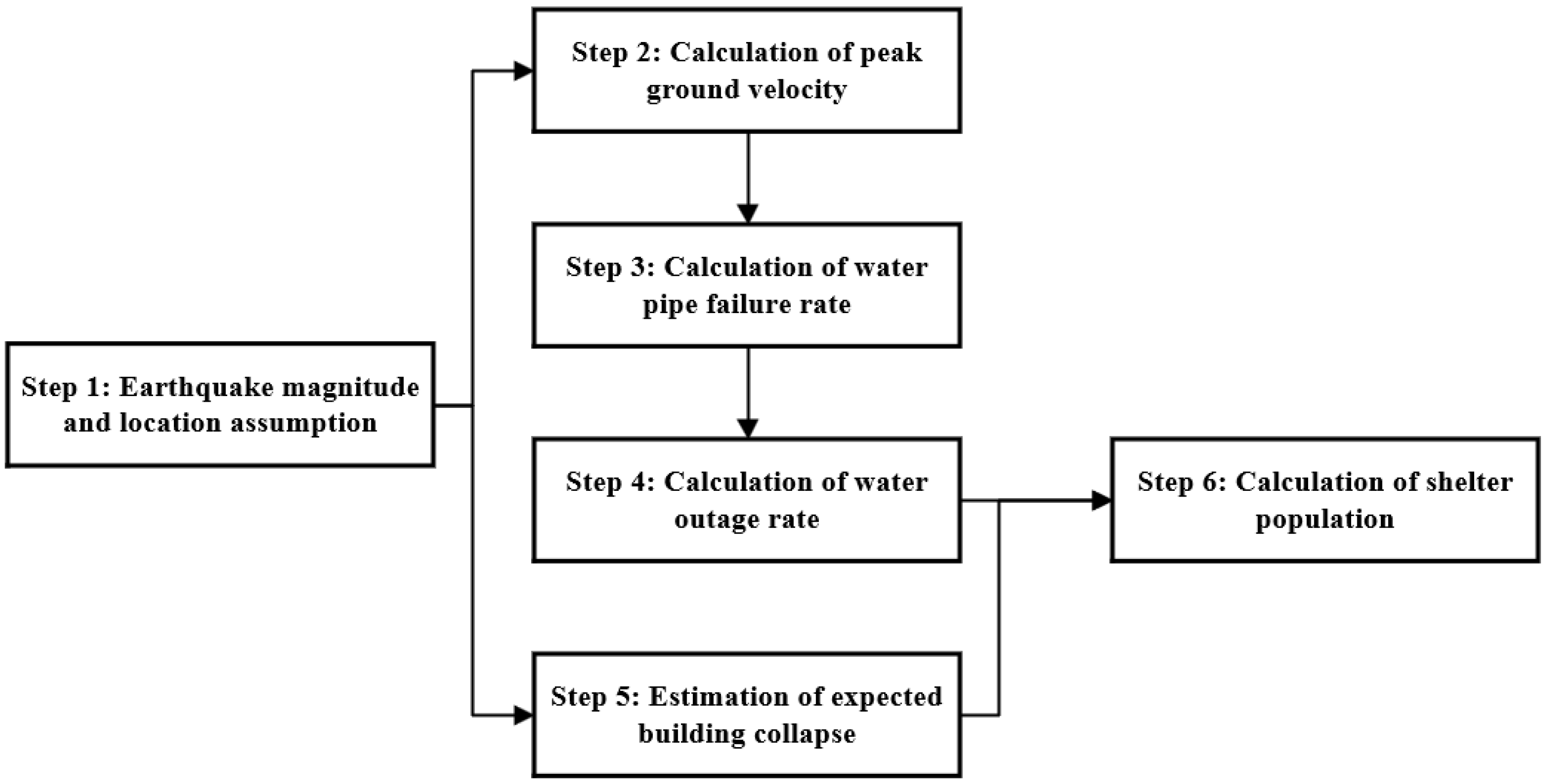 Here, residents corresponding to h1 and h2 become immediately homeless and require shelter after the earthquake. The h3 group refers to residents whose homes are basically intact but may experience temporary inconvenience due to loss of water or power.