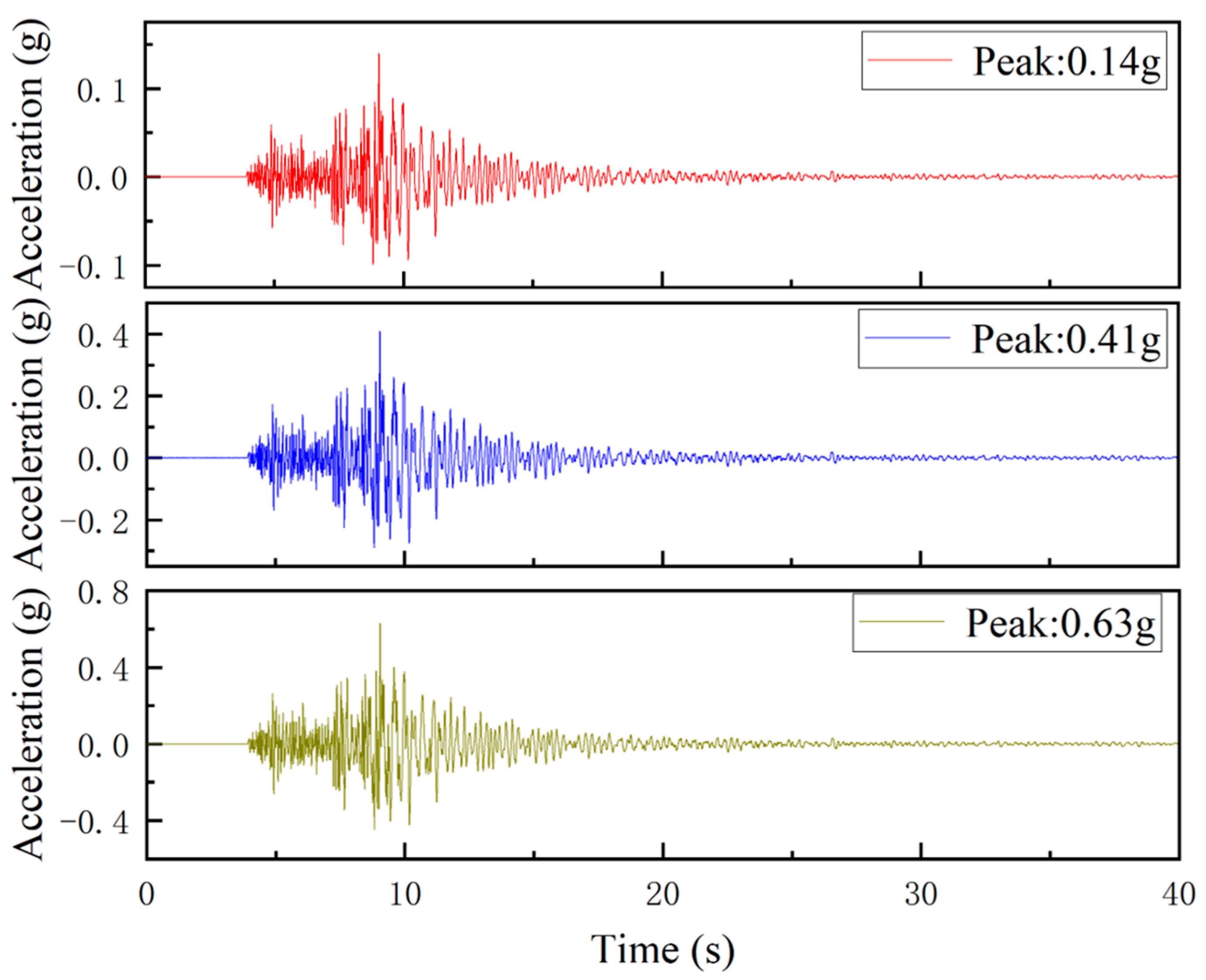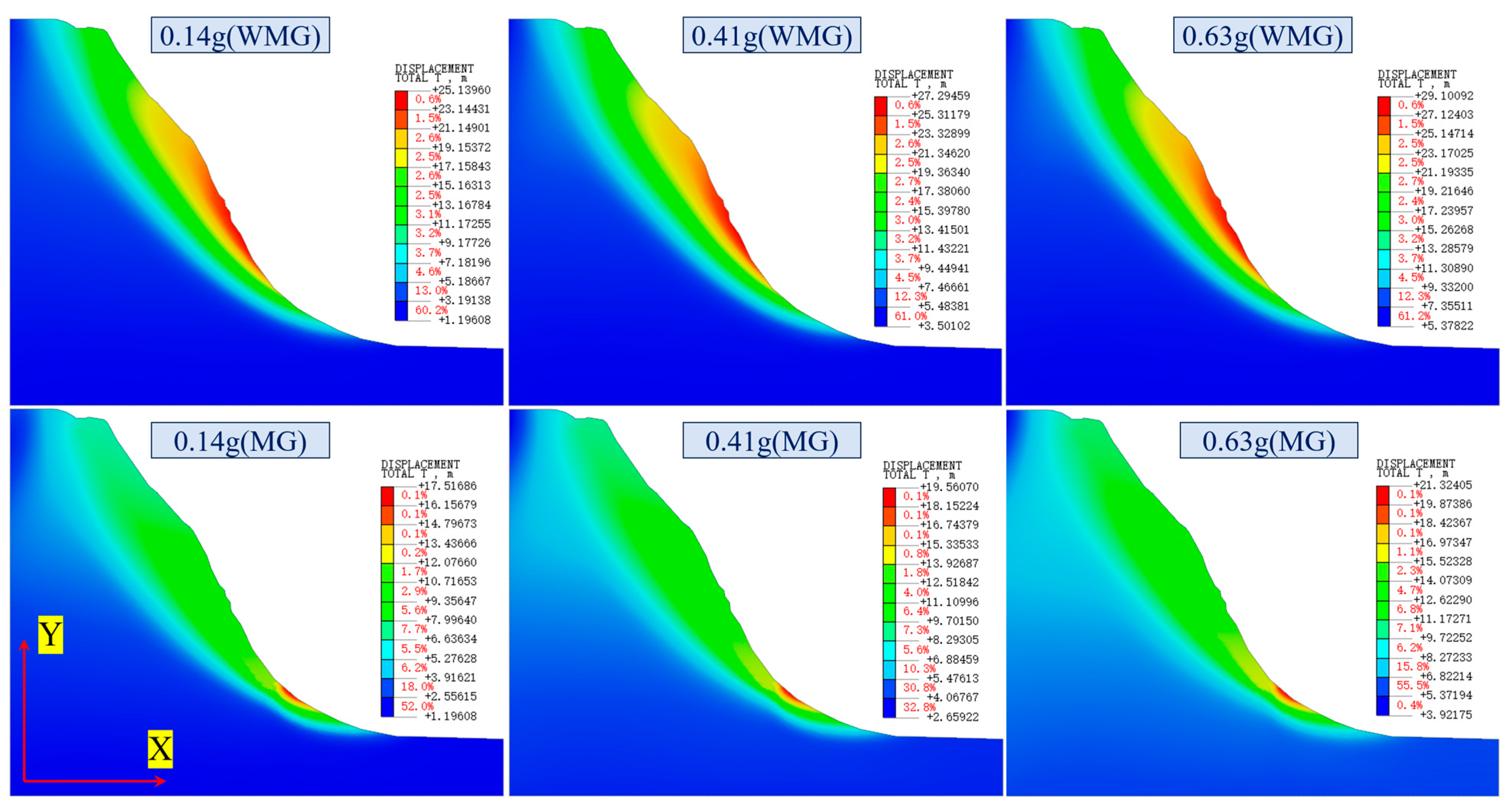 3.2. Slope Stability Analysis Under Different Seismic Conditions