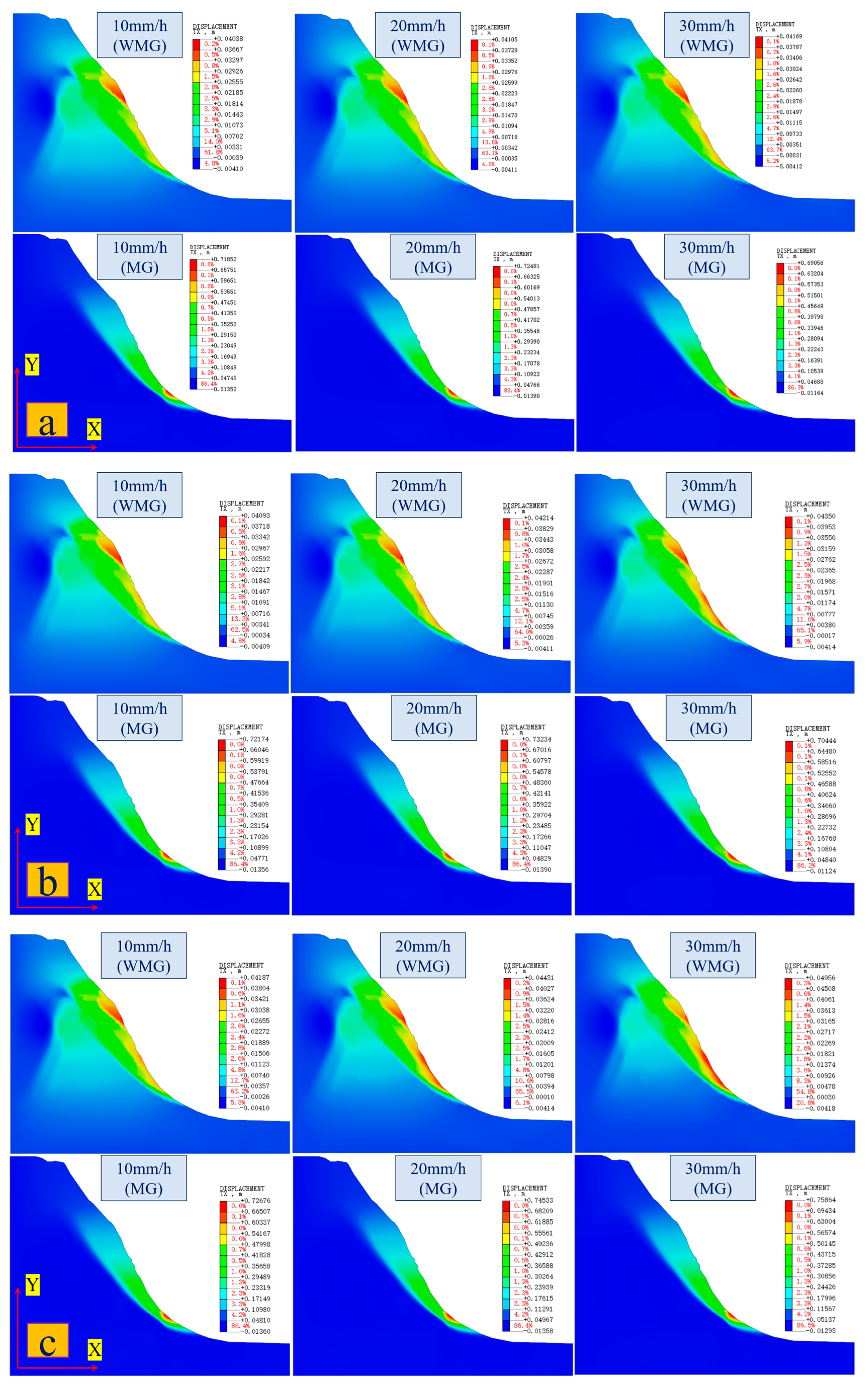 3.1. Slope Stability Analysis Under Different Rainfall Conditions