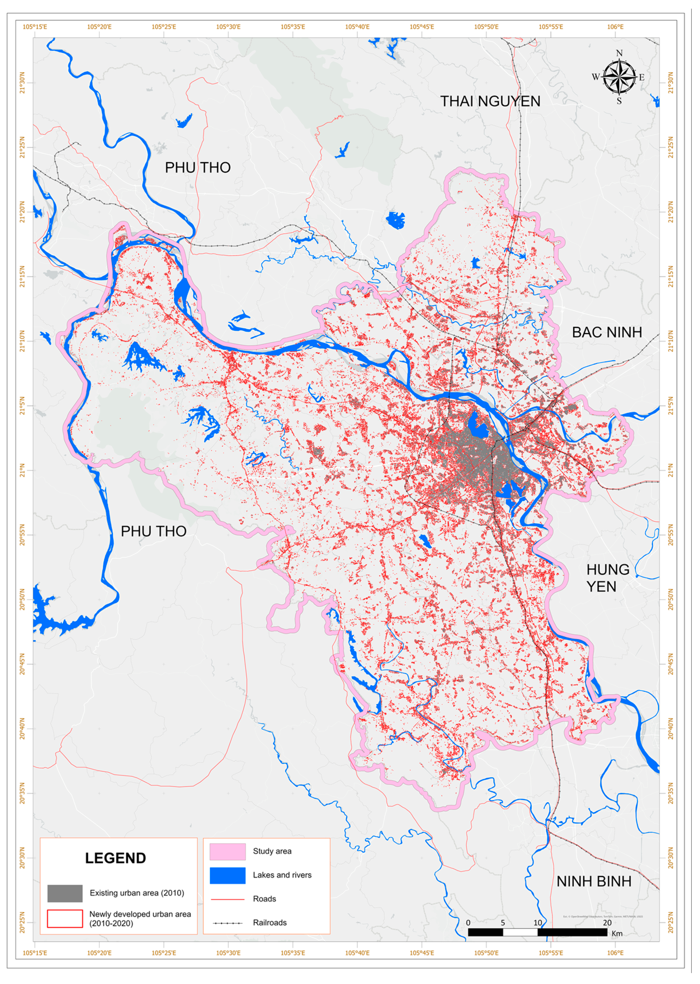 - Hanoi Statistics Office. Hanoi Statistical Yearbook 2010; Statistical Publishing House: Hanoi, Vietnam, 2011. (In Vietnamese) [Google Scholar]