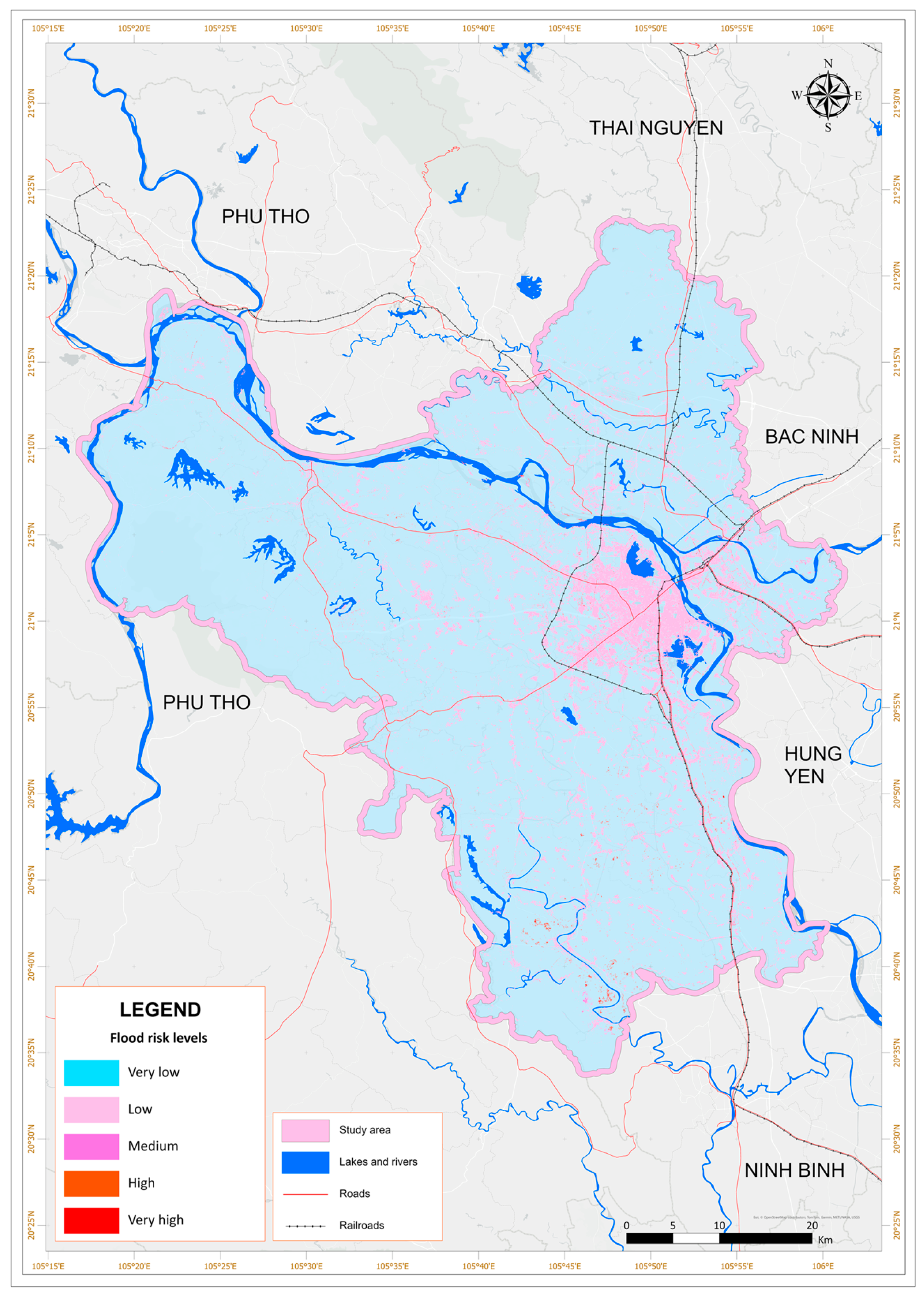 - Ngan, D.T. Geomorphological Study in Flood Hazard Warning for the Hanoi Area. Bachelor’s Thesis, VNU University of Science, Hanoi, Vietnam, 2009. (In Vietnamese). [Google Scholar]