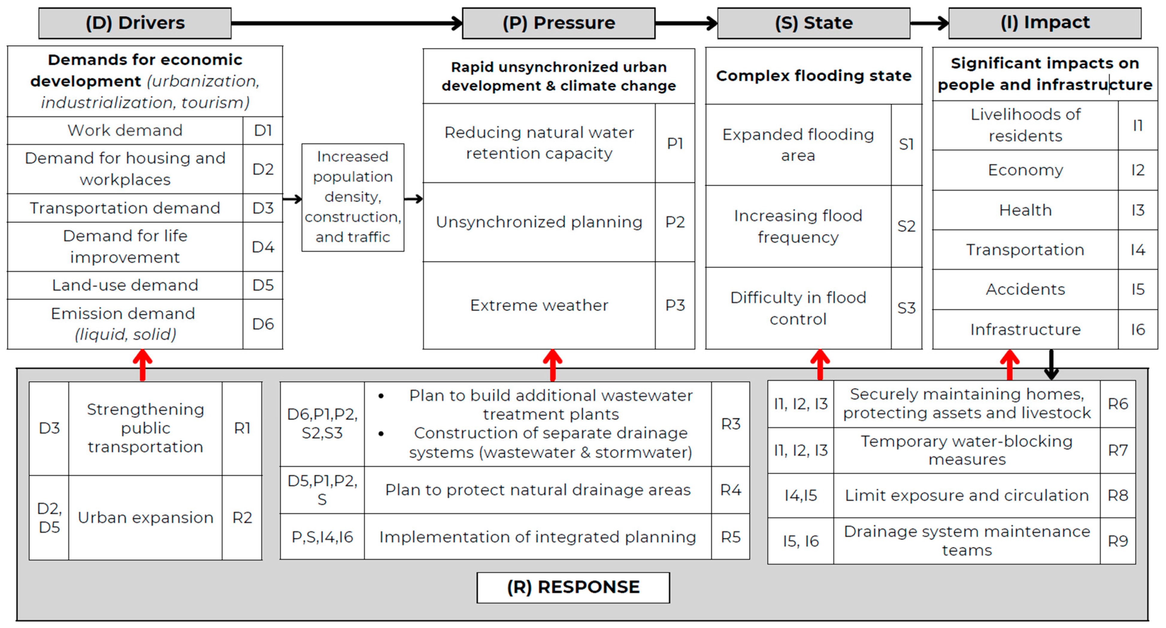 4.6. DPSIR Framework in Assessing Urban Flooding and Spatial Planning in Hanoi