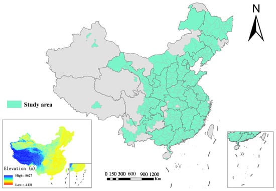 This study focuses on 287 cities in China as its research object (see Figure 1). The spatial scope covers megacities, core metropolitan areas, and small and medium-sized inland cities, forming a multi-level and whole-region urban system.