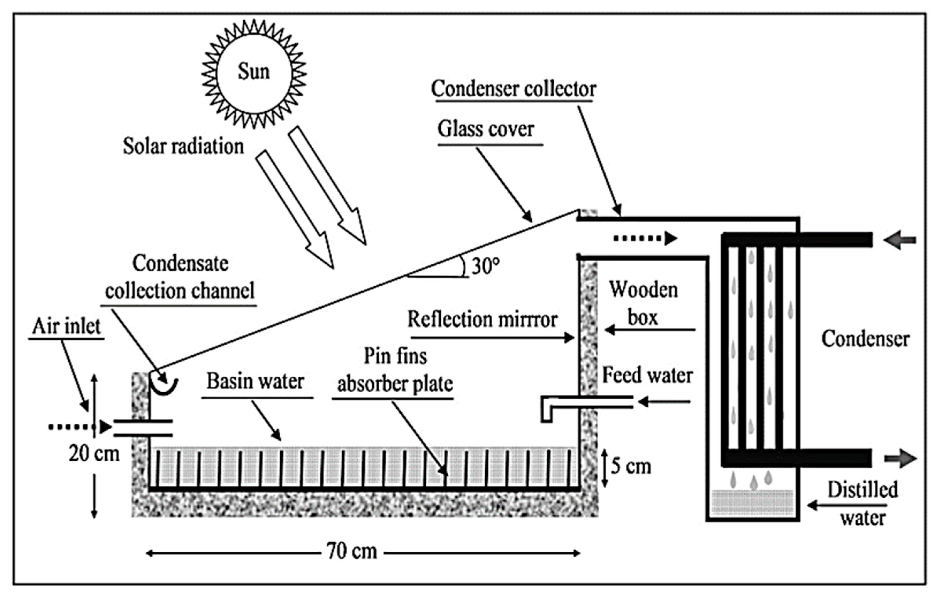 - High-temperature gradients for condensation were ascertained using external condensers. However, they necessitate additional space, while consuming auxiliary energy and requiring frequent maintenance. However, internal condensers are more susceptible to ambient conditions and internal airflow dynamics as they passively operate, i.e., fail to efficiently operate in humid or low-sunlight environments.