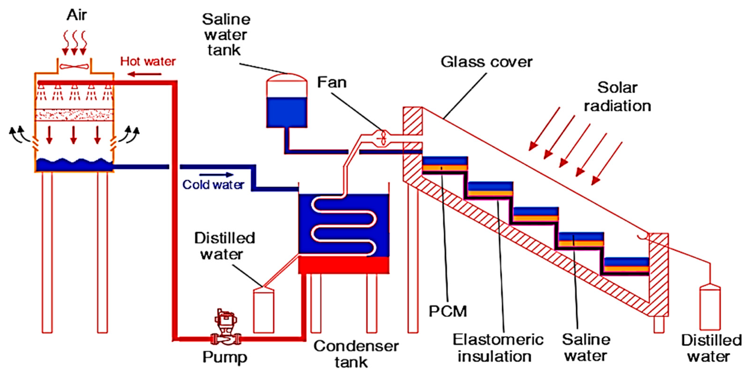 | Toosi et al. (2021) [61] | Stepped with PCM | PCM and external condenser | Productivity rate | 104% improvement with PCM and condenser. |
