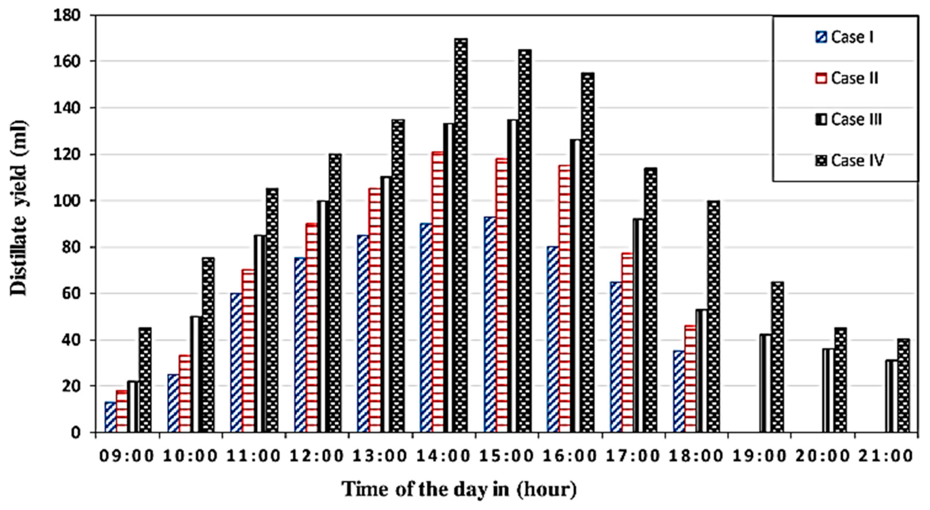 - Greater water production was achieved compared to traditional solar still systems by integrating external and internal condensers into solar stills. Statistically, an improvement of water production between 24% and 165% was reported for external condensers and between 30% and 150% for internal condensers.