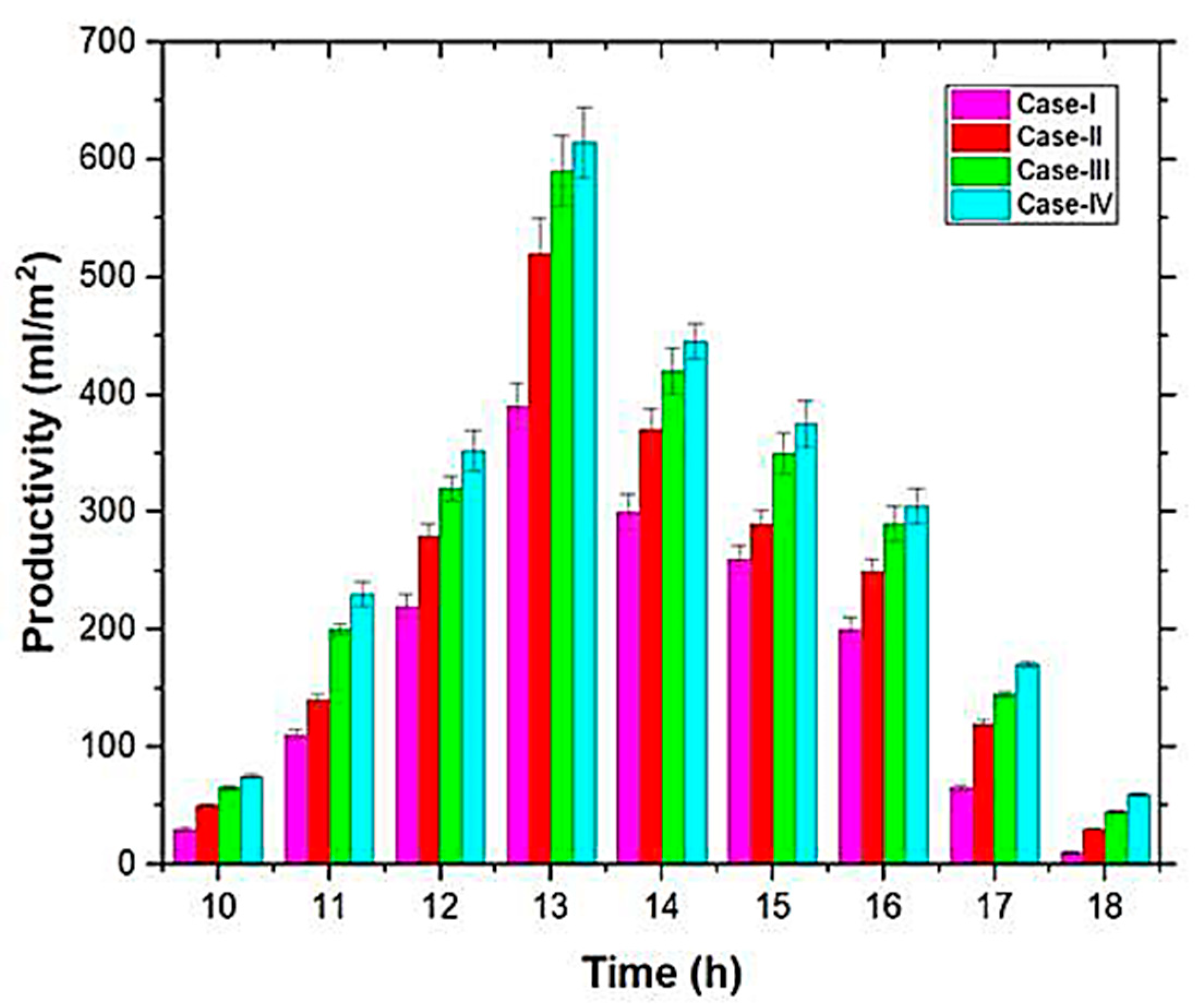 | El-Samadony et al. (2014) [49] | Stepped | Internal and external reflectors with external condenser | Daily productivity | Productivity increased by 165% with reflectors and condenser. |