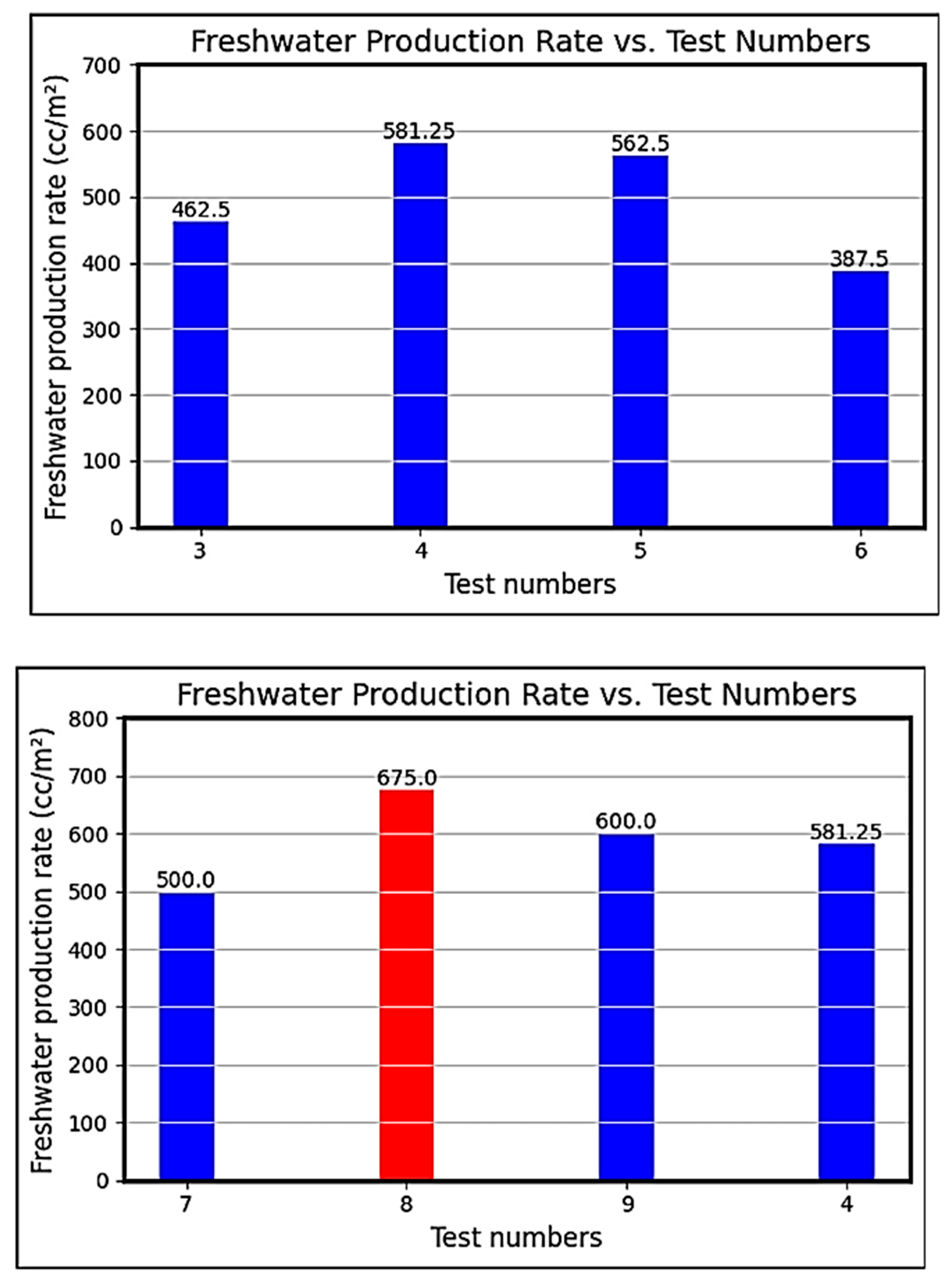 | Amiri (2024) [101] | Improved stepped | Theoretical model validation for built-in condenser | Daily yield, RMSE | 3.7% relative error in yield estimation. |