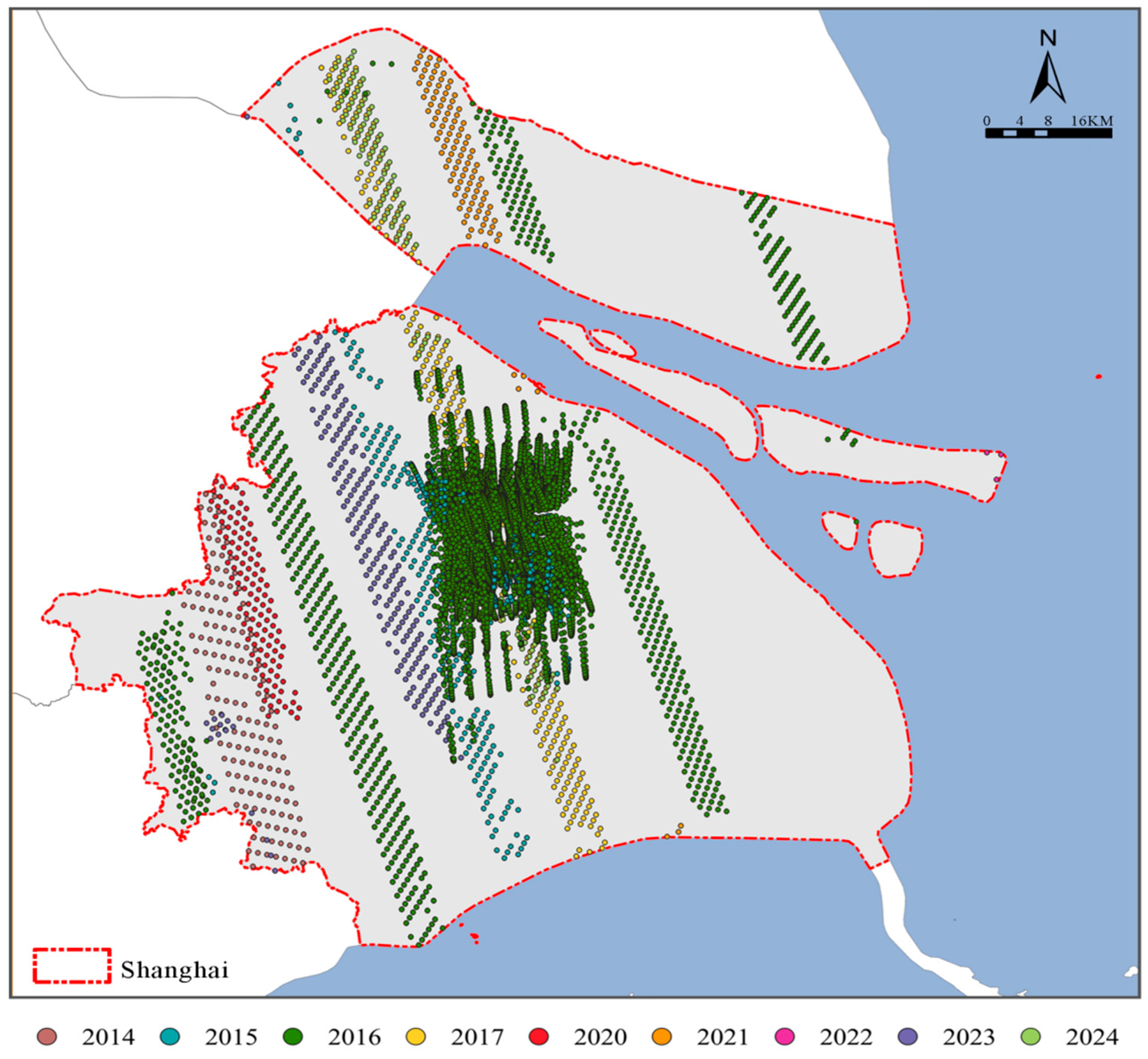 - Yang, J.; Huang, X. The 30 m Annual Land Cover Datasets and Its Dynamics in China from 1985 to 2022. Earth Syst. Sci. Data 2023, 13, 3907–3925. [Google Scholar] [CrossRef]