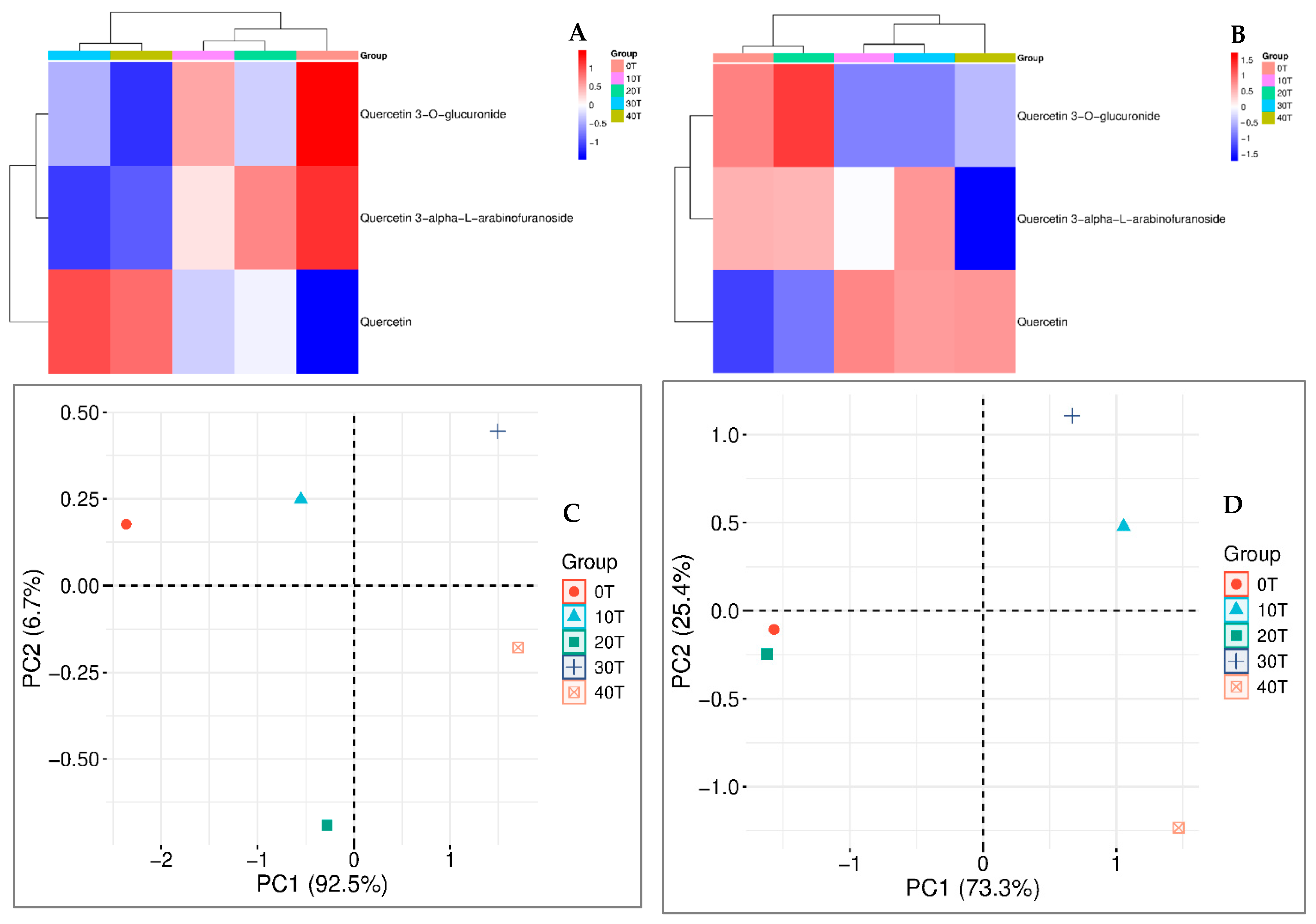 | Kaempferol 3-O-glucoside | 449.108 | 5.76 | 2.07 | 2.04 | 2.11 | 2.26 | 2.20 | 2.29 | 2.35 | 2.19 | 2.68 | 2.71 | [79] |