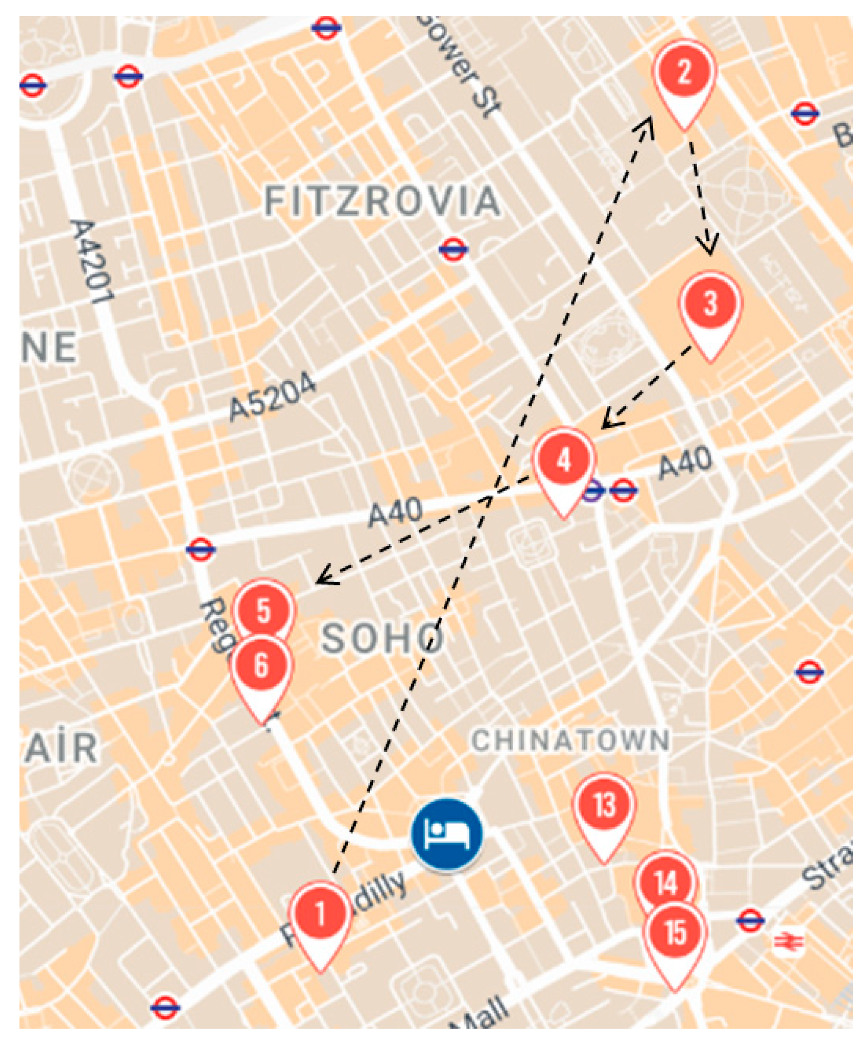 - Sylejmani, K.; Abdurrahmani, V.; Ahmeti, A.; Gashi, E. Solving the Tourist Trip Planning Problem with Attraction Patterns Using Meta-Heuristic Techniques. Inf. Technol. Tour. 2024, 26, 633–678. [Google Scholar] [CrossRef]
