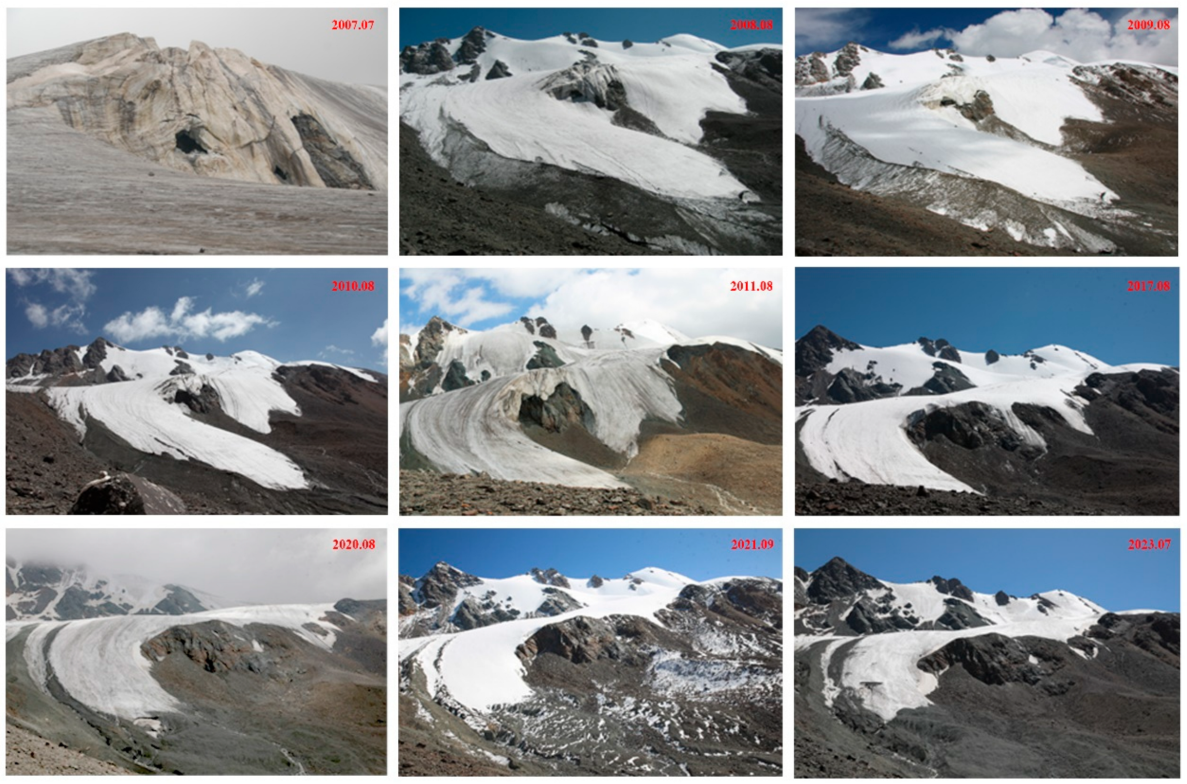 - Wang, S.; Che, Y.; Pang, H.; Du, J.; Zhang, Z. Accelerated Changes of Glaciers in the Yulong Snow Mountain, Southeast Qinghai-Tibetan Plateau. Reg. Environ. Change 2020, 20, 38. [Google Scholar] [CrossRef]