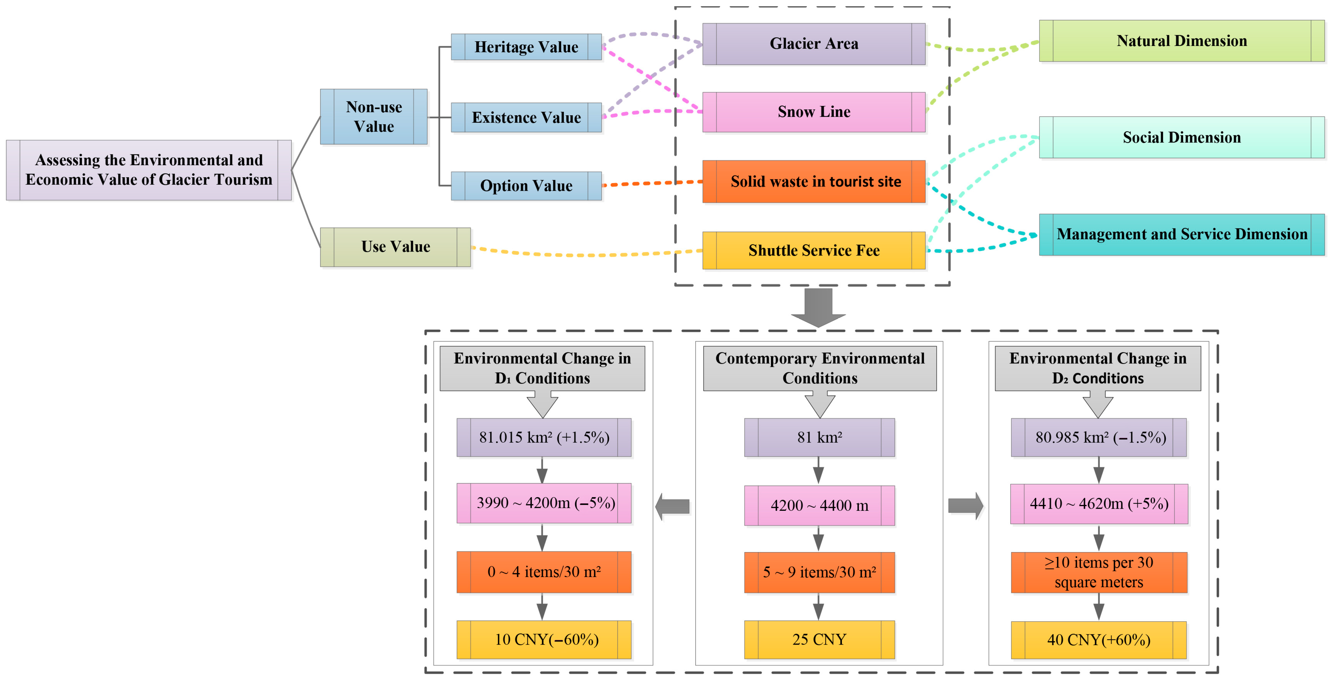 - Yuan, L.; Wang, S. Recreational Value of Glacier Tourism Resources: A Travel Cost Analysis for Yulong Snow Mountain. J. Mt. Sci. 2018, 15, 1446–1459. [Google Scholar] [CrossRef]