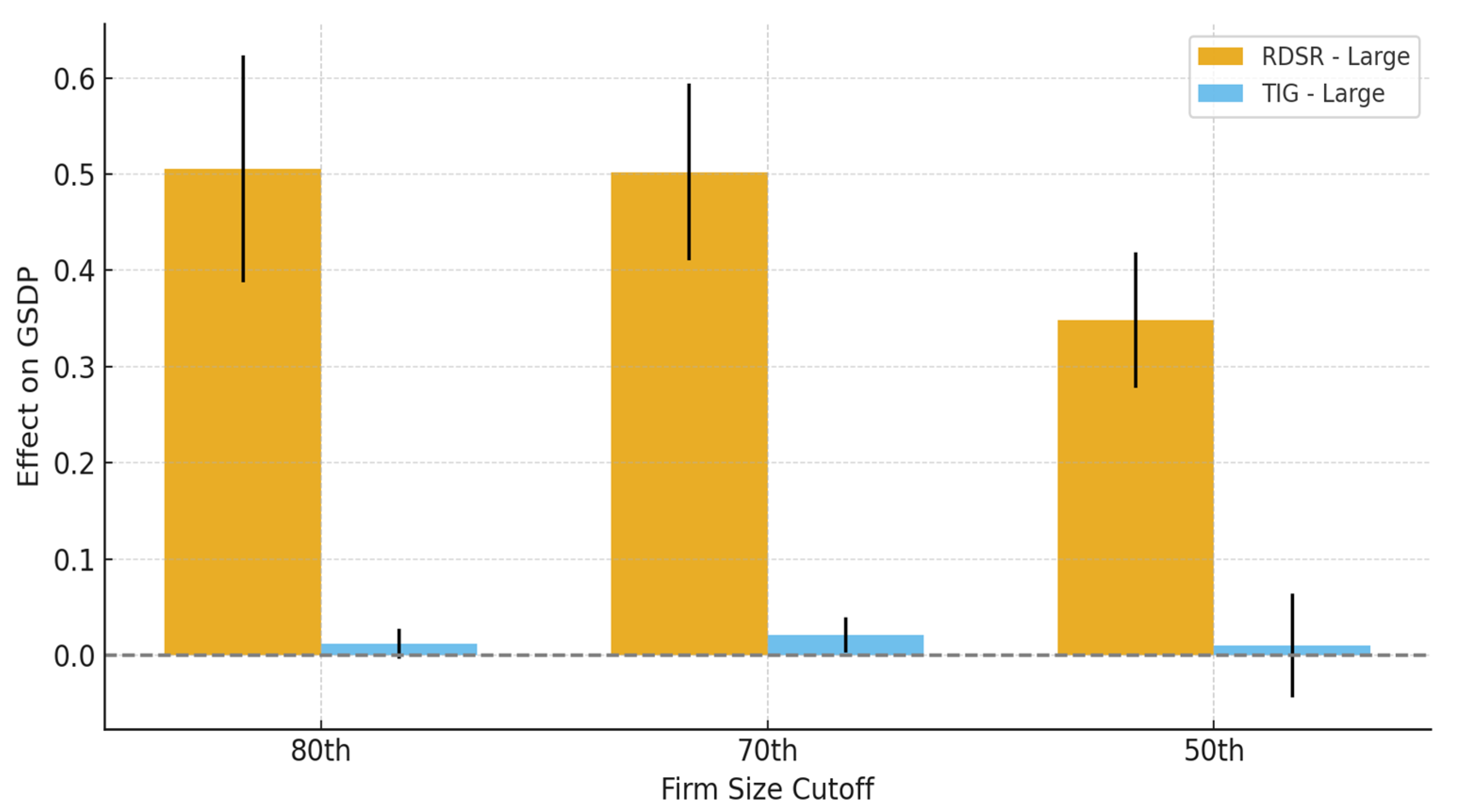 | RDSR (R&D Super-deduction, share) | 0.1168 ** (0.0523) | 0.4386 *** (0.1052) | −0.1052 (0.0996) |