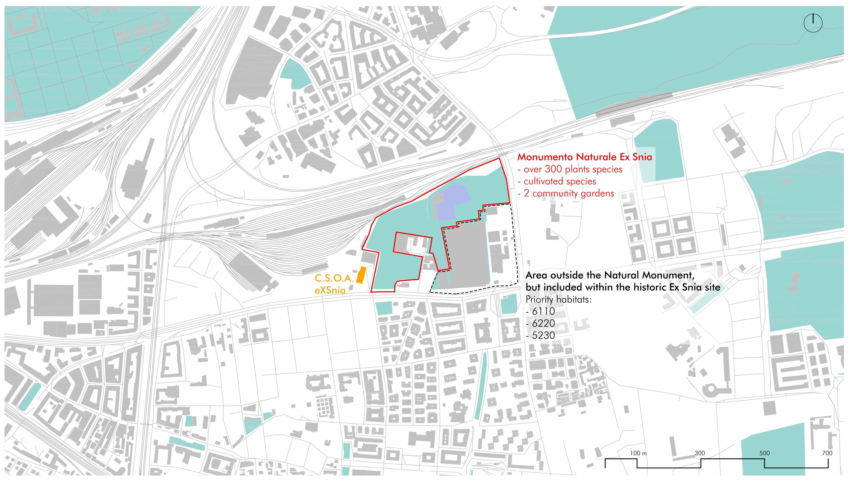 | 7. Maintenance regimes | Mostly informal, low-input; selective volunteer interventions. | No systematic maintenance; occasional clearing; unmanaged succession. | Minimal institutional maintenance; disturbance-driven dynamics. | All sites need differential, low-intensity regimes; Ex Snia already shows adaptive informal practices. |