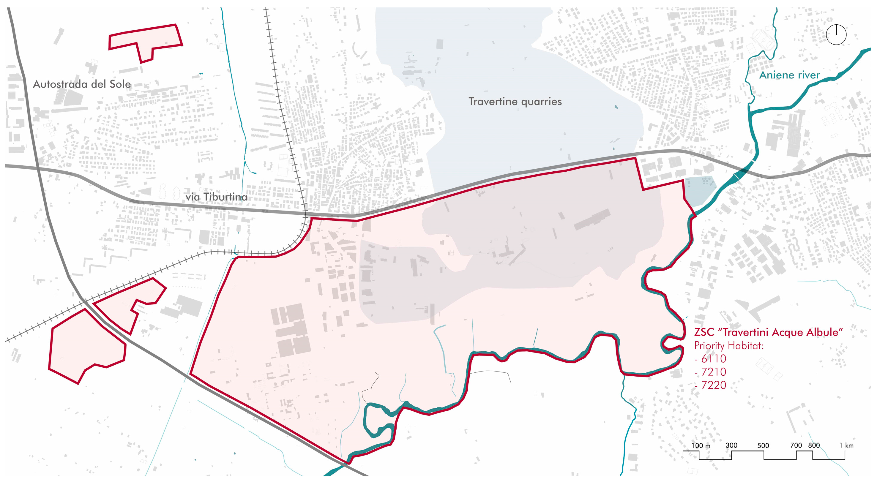 - Misure di Conservazione del SIC IT6030033 “Travertini Acque Albule (Bagni di Tivoli)”. Available online: https://www.regione.lazio.it/sites/default/files/documentazione/AMB_DGR_813_06_12_2017_All1.pdf (accessed on 12 October 2025).