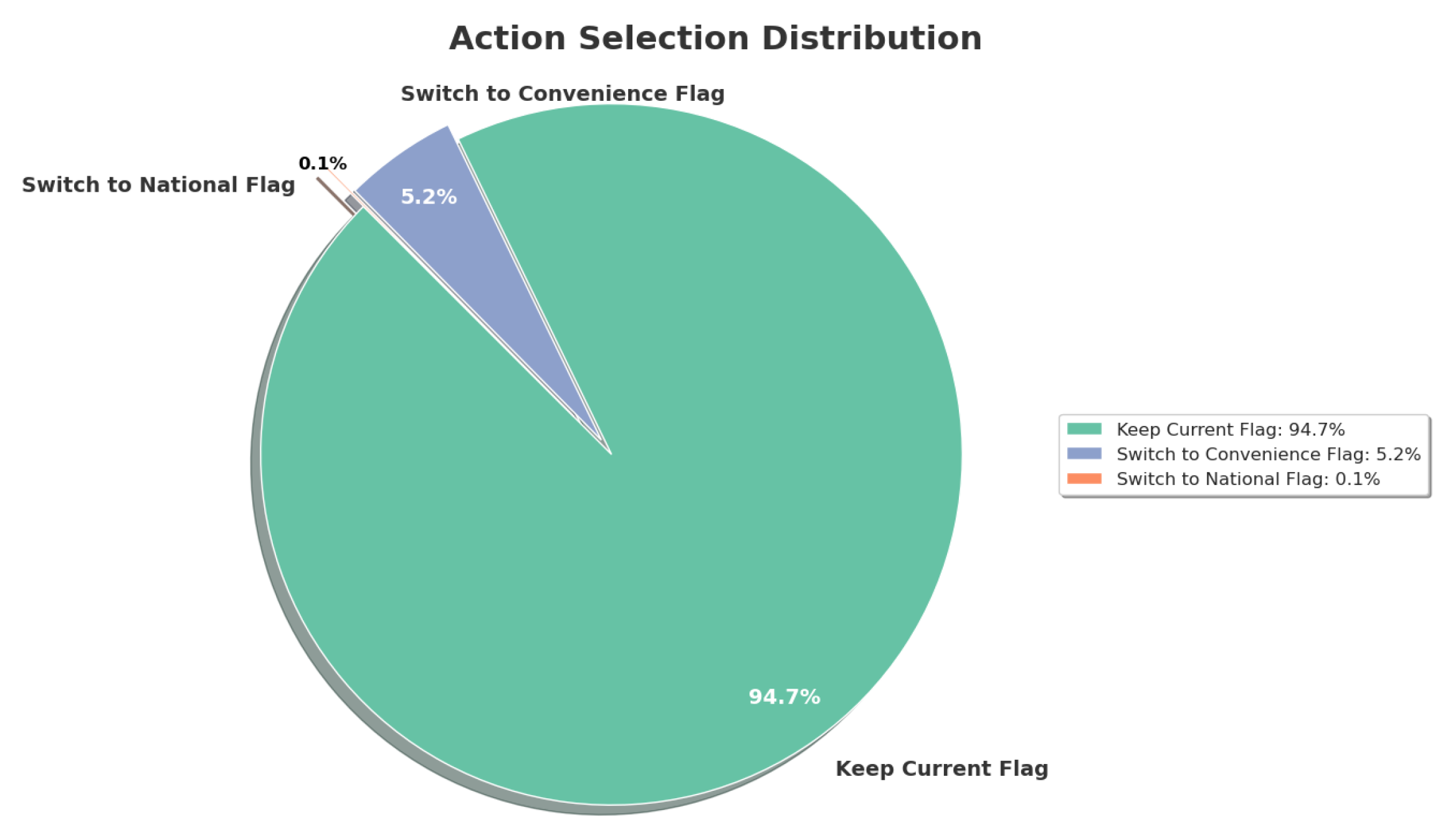 - We apply Deep Reinforcement Learning to the flag-of-registry selection problem, addressing the limitations of traditional static discrete choice models. We formulate flag selection as a sequential decision process. This approach captures how current choices influence future inspection risks and operational costs, offering a new theoretical lens for sustainability trade-offs.