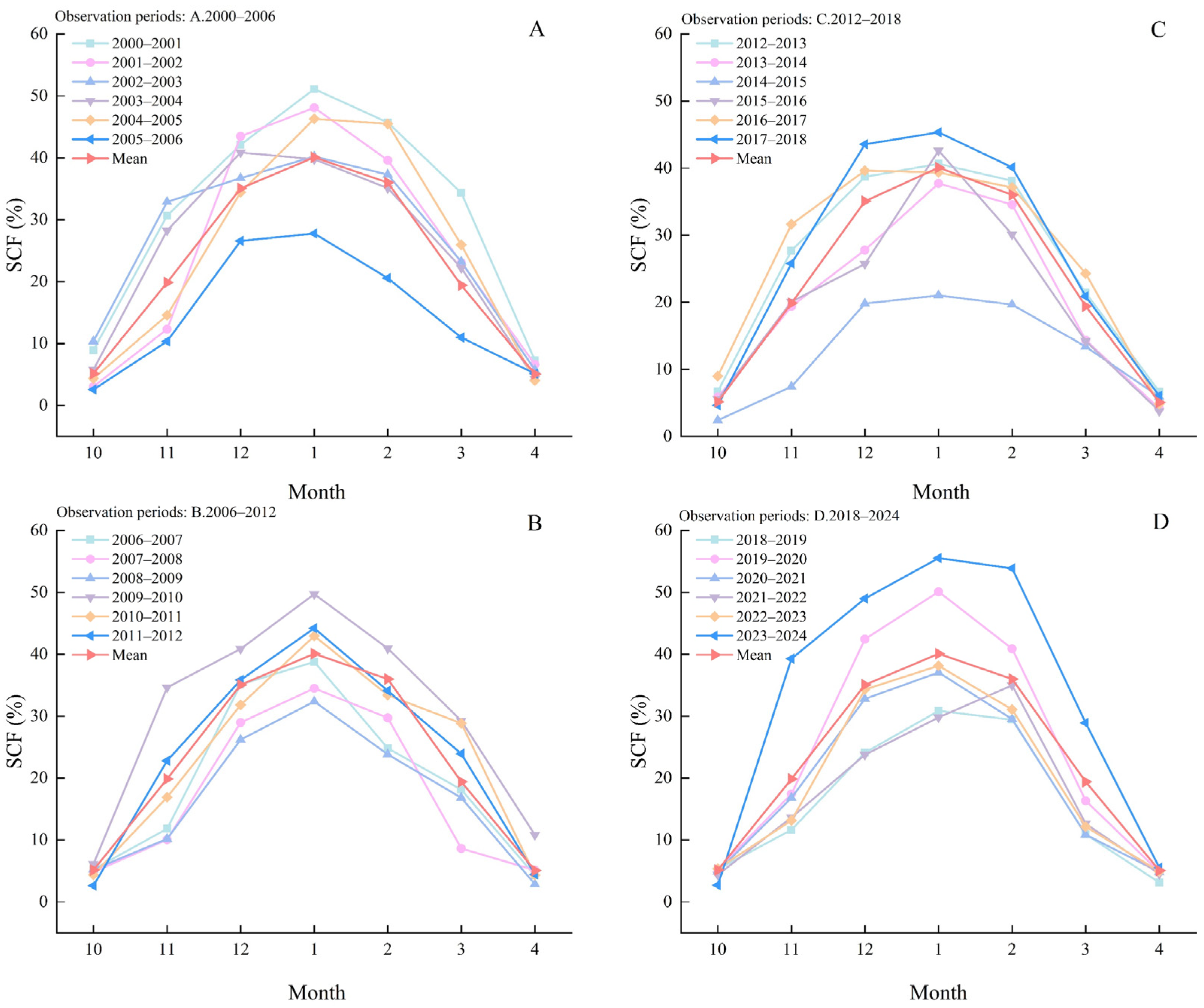 3.2. Interannual and Intra-Annual Variability of Snow Cover