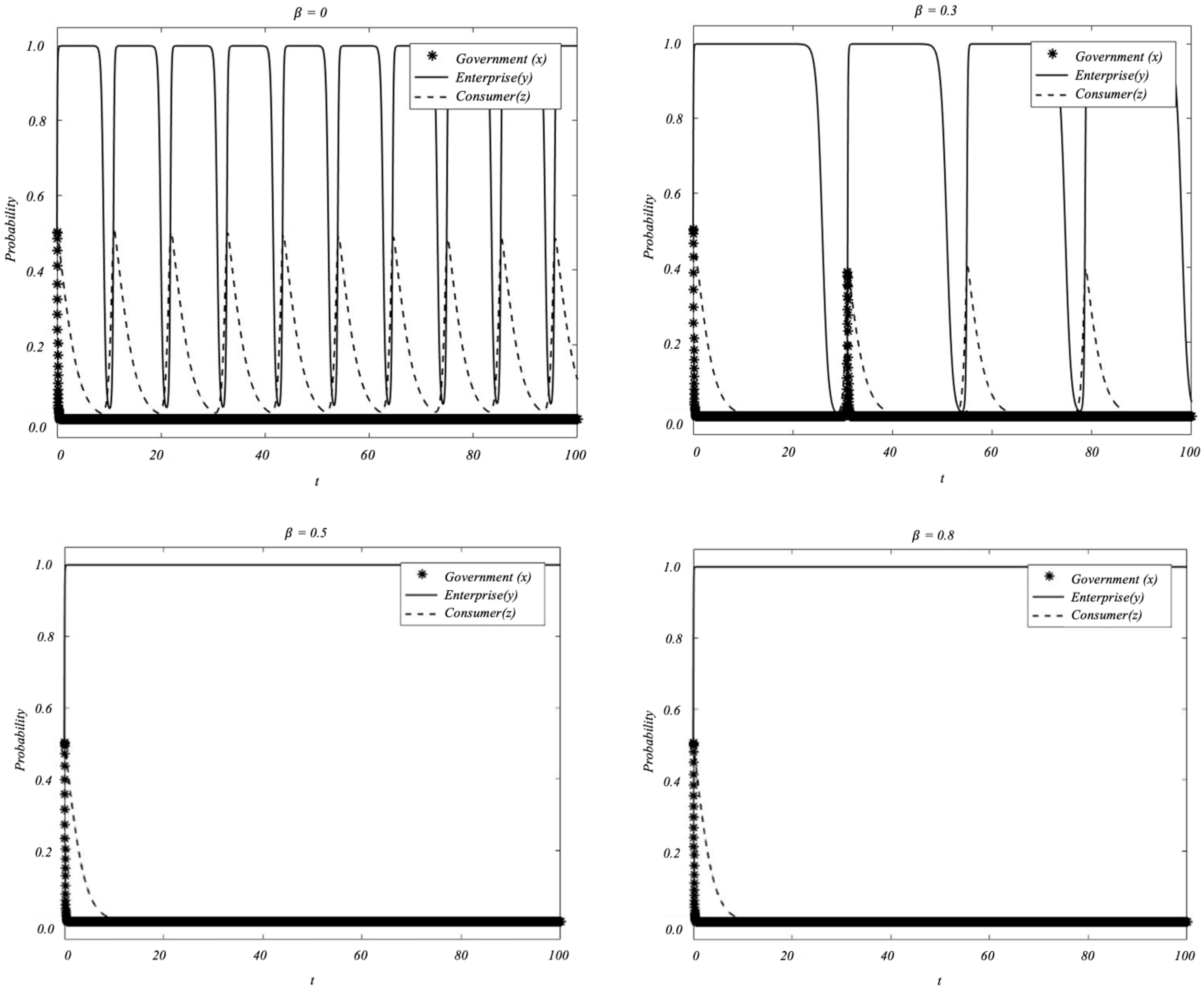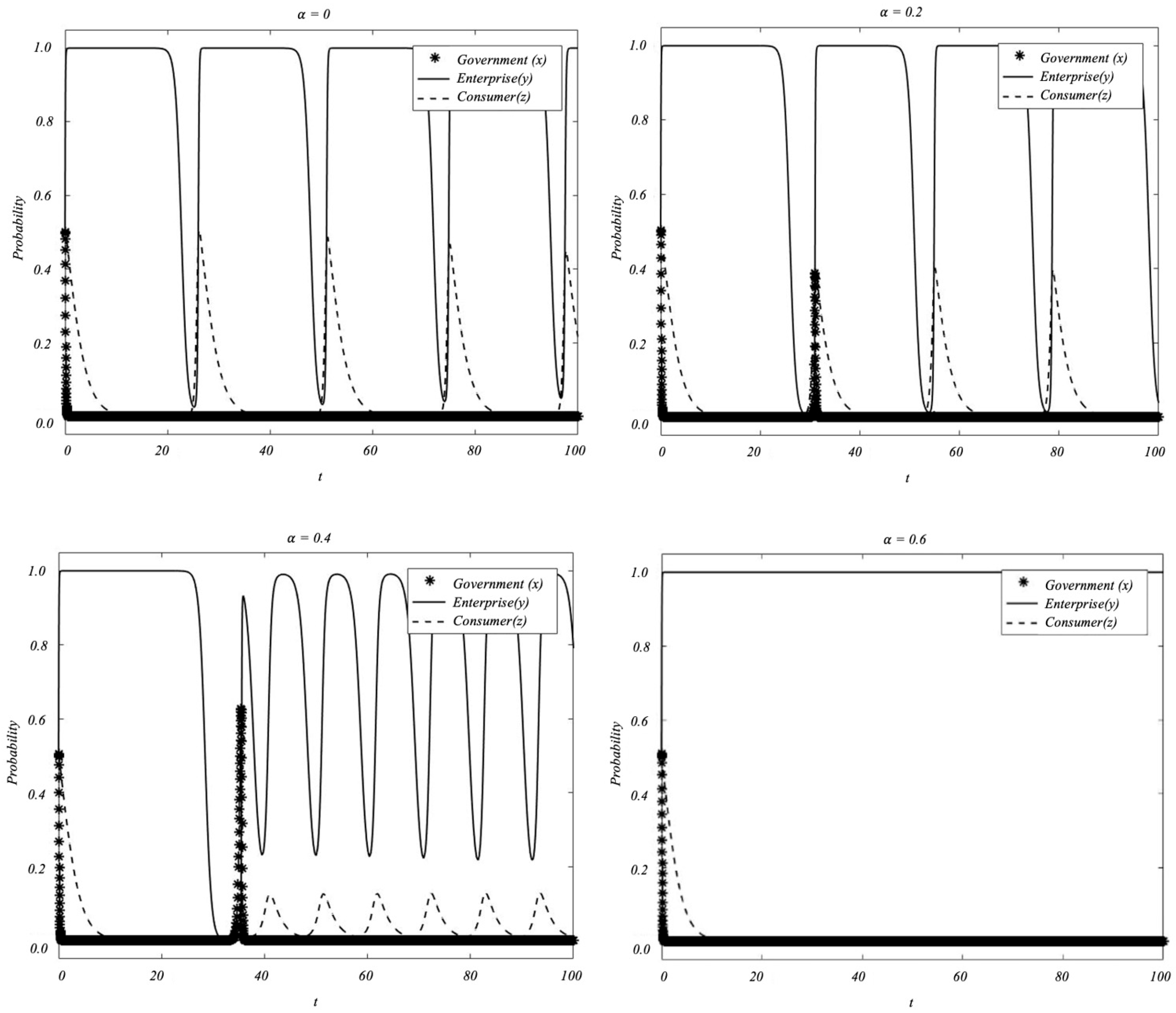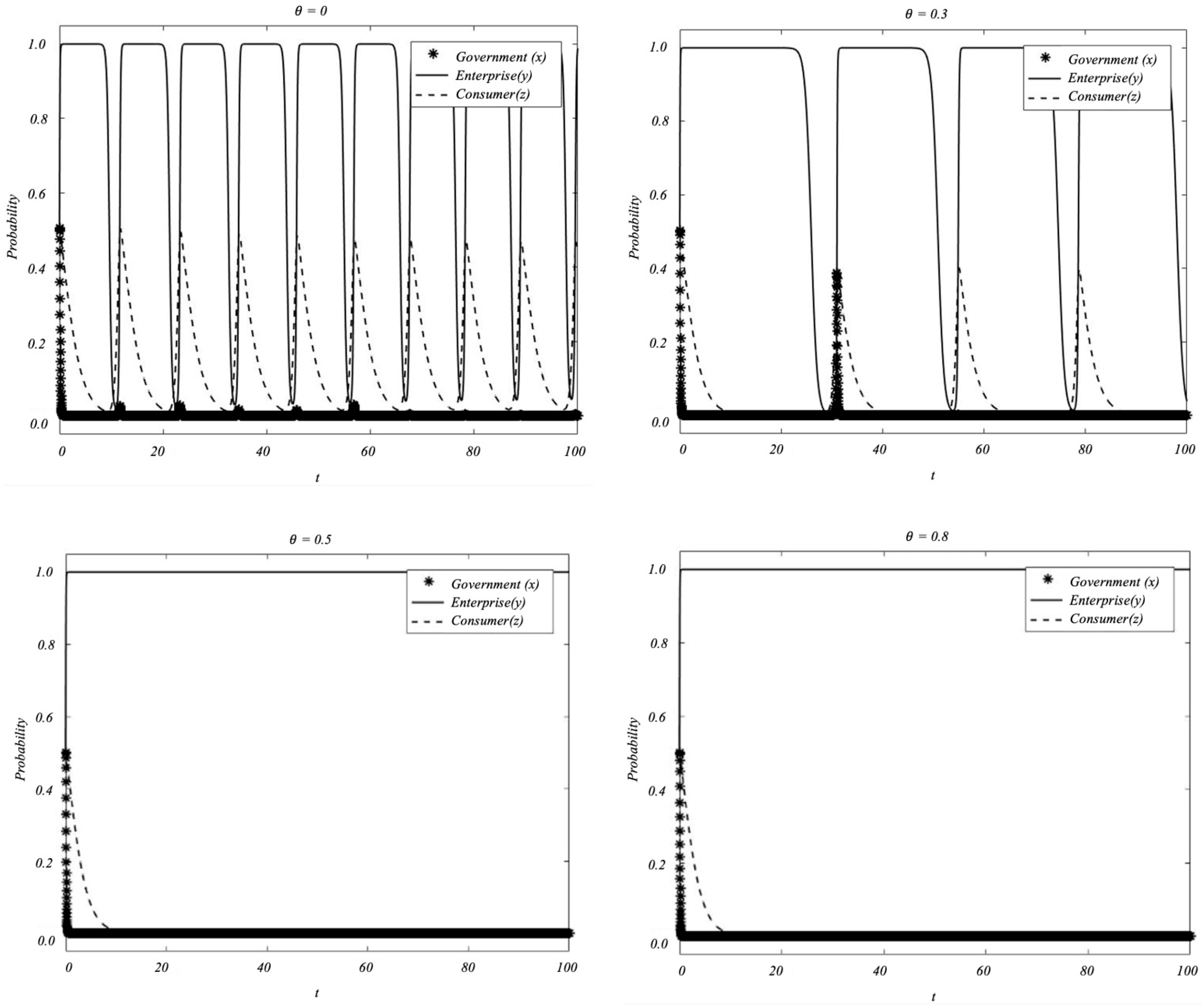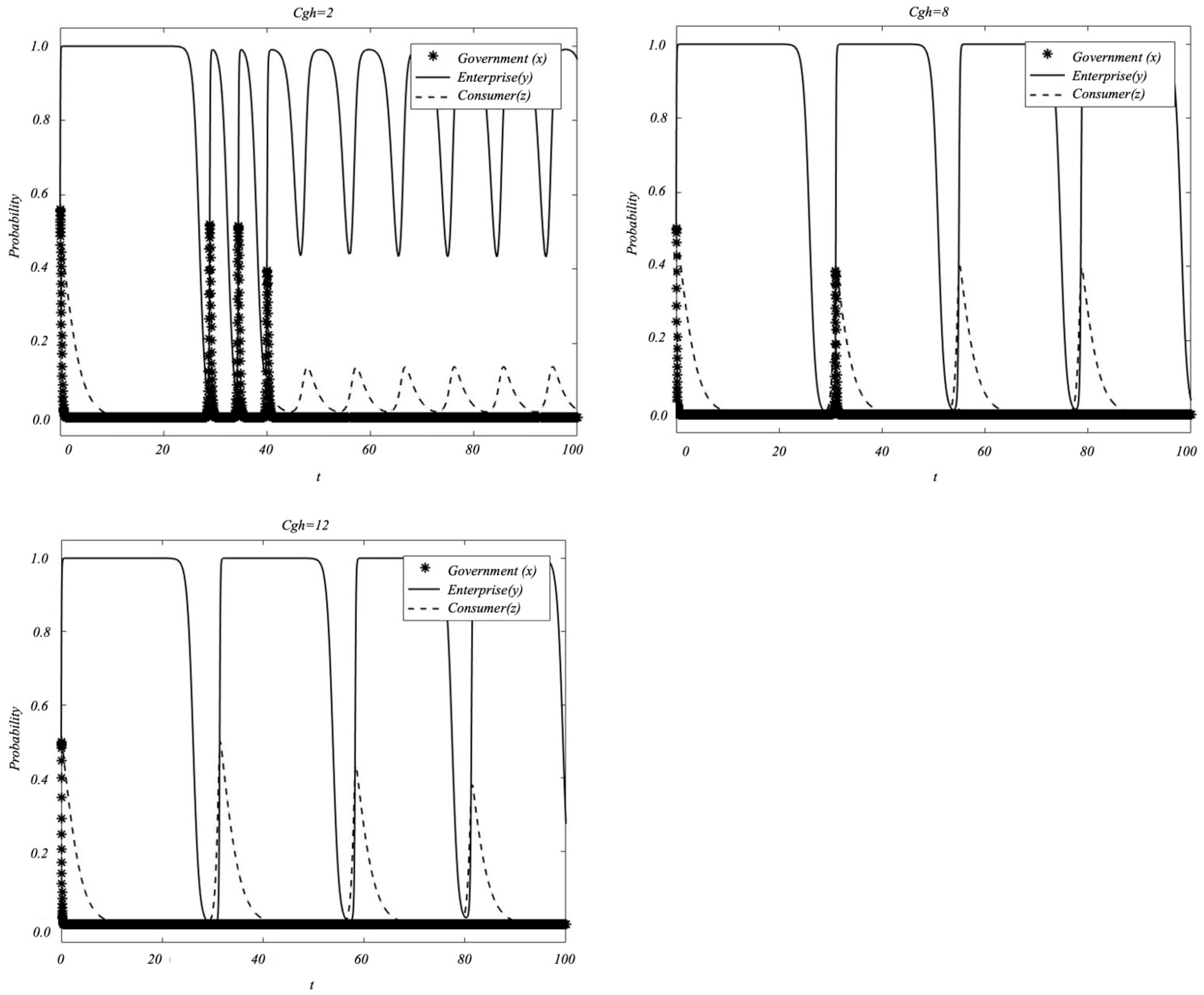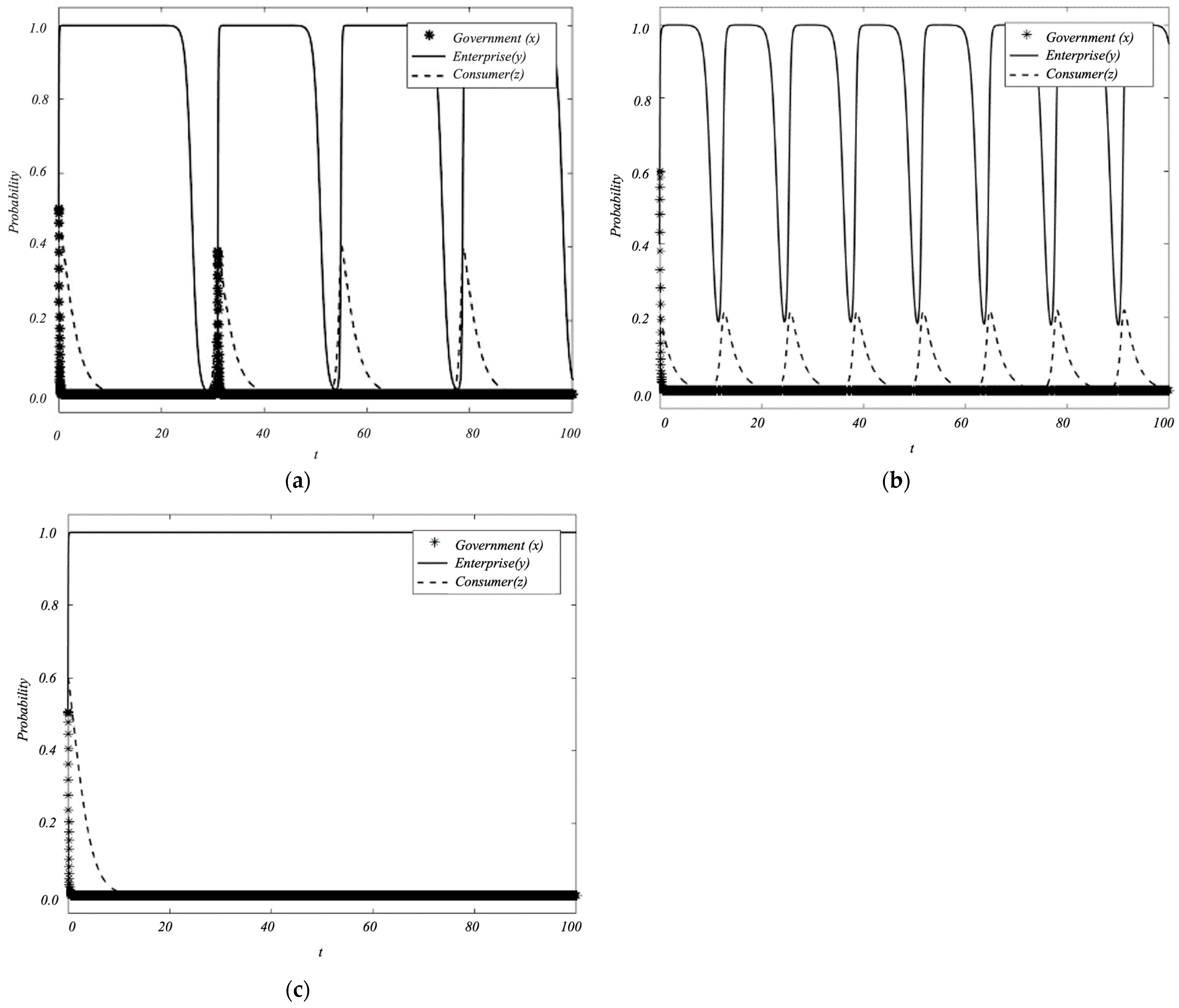 4.2.1. Evolutionary Impact of Varying Government Strict Supervision Cost ()