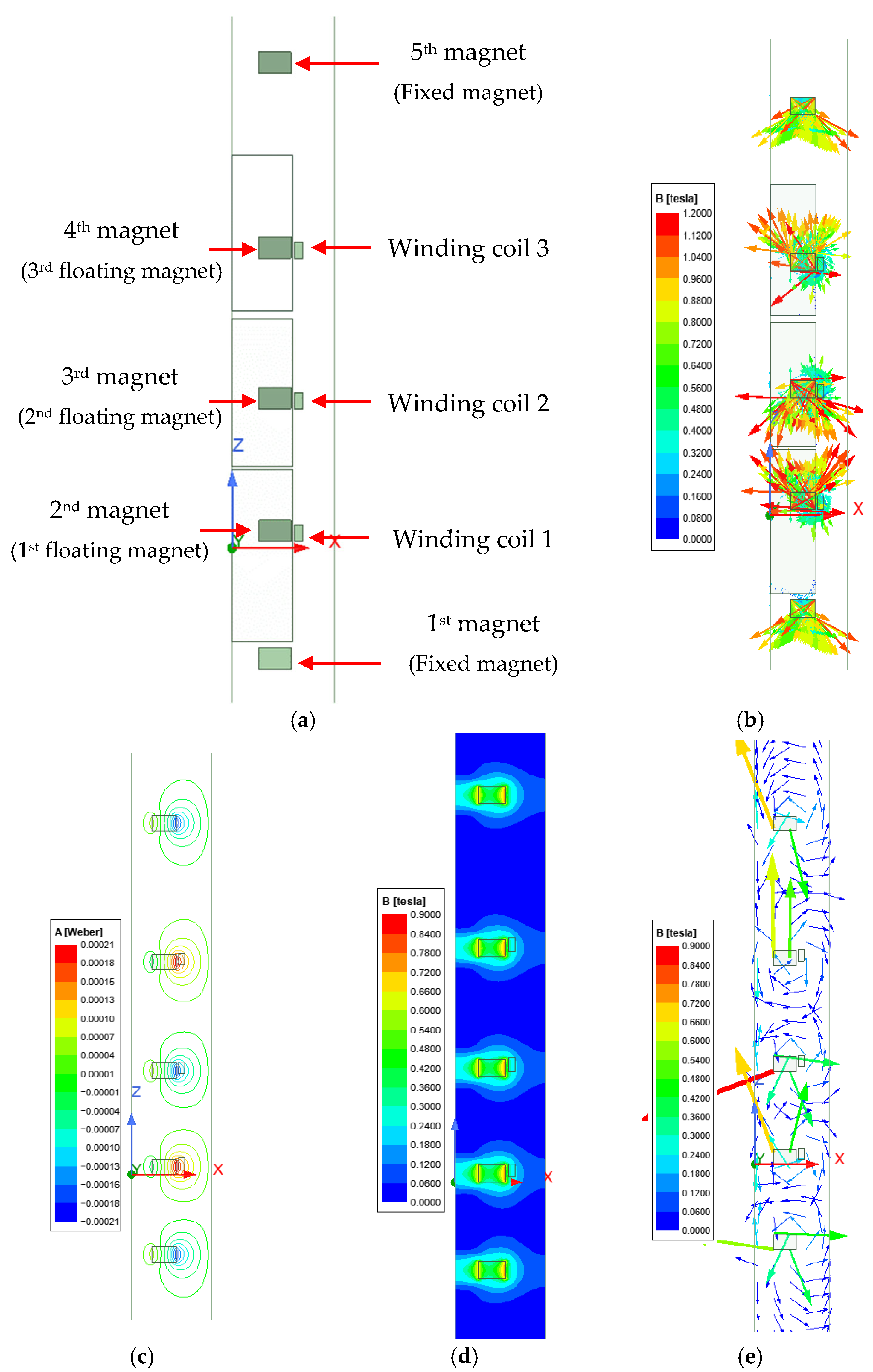 Figure 2c presents the flux line of all five magnets. The arrows in