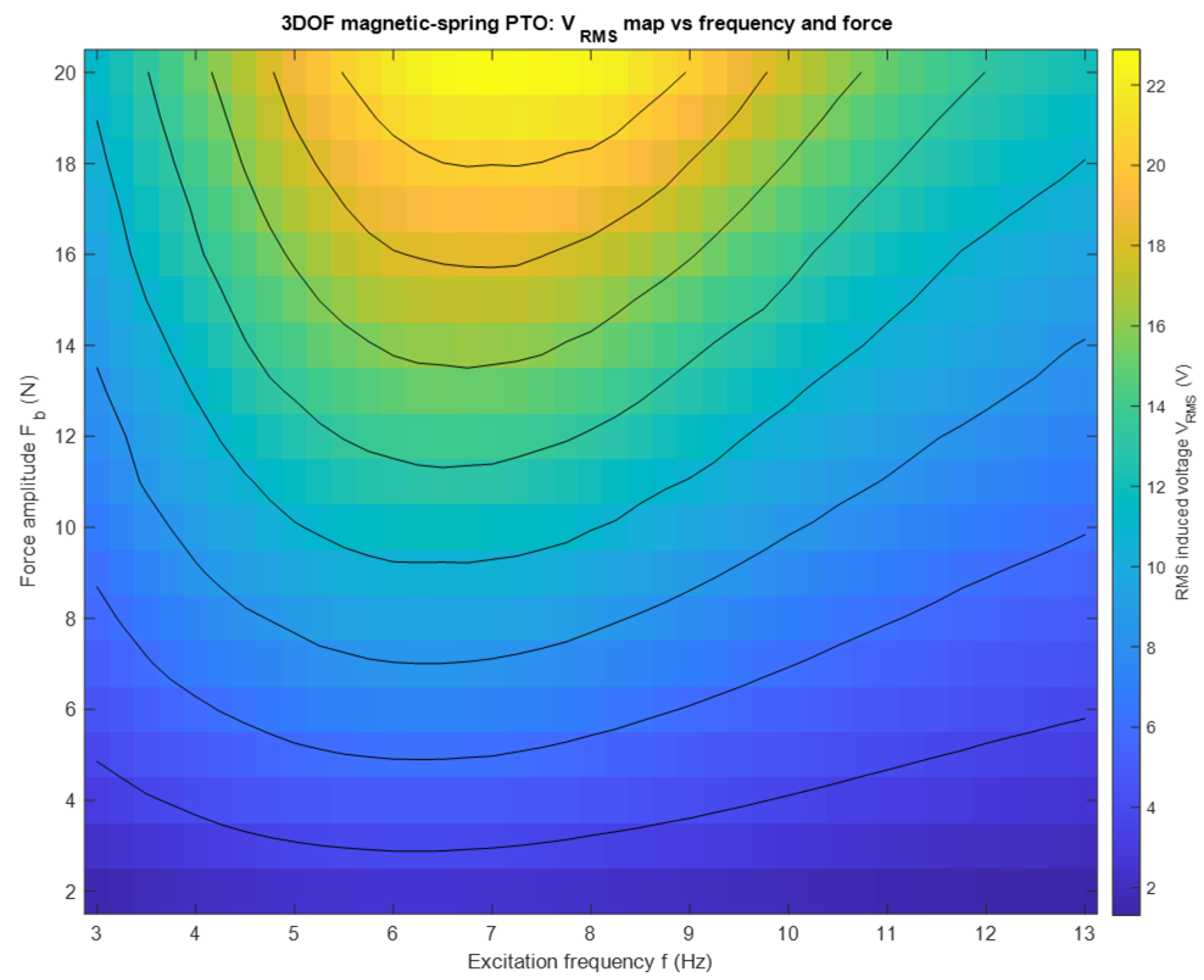Figure 22 shows the comparison of induced voltage generated by SDOF, 2DOF and 3DOF magnetic-spring PTO systems under identical excitation (6.5 N amplitude, 3.13 Hz excitation).