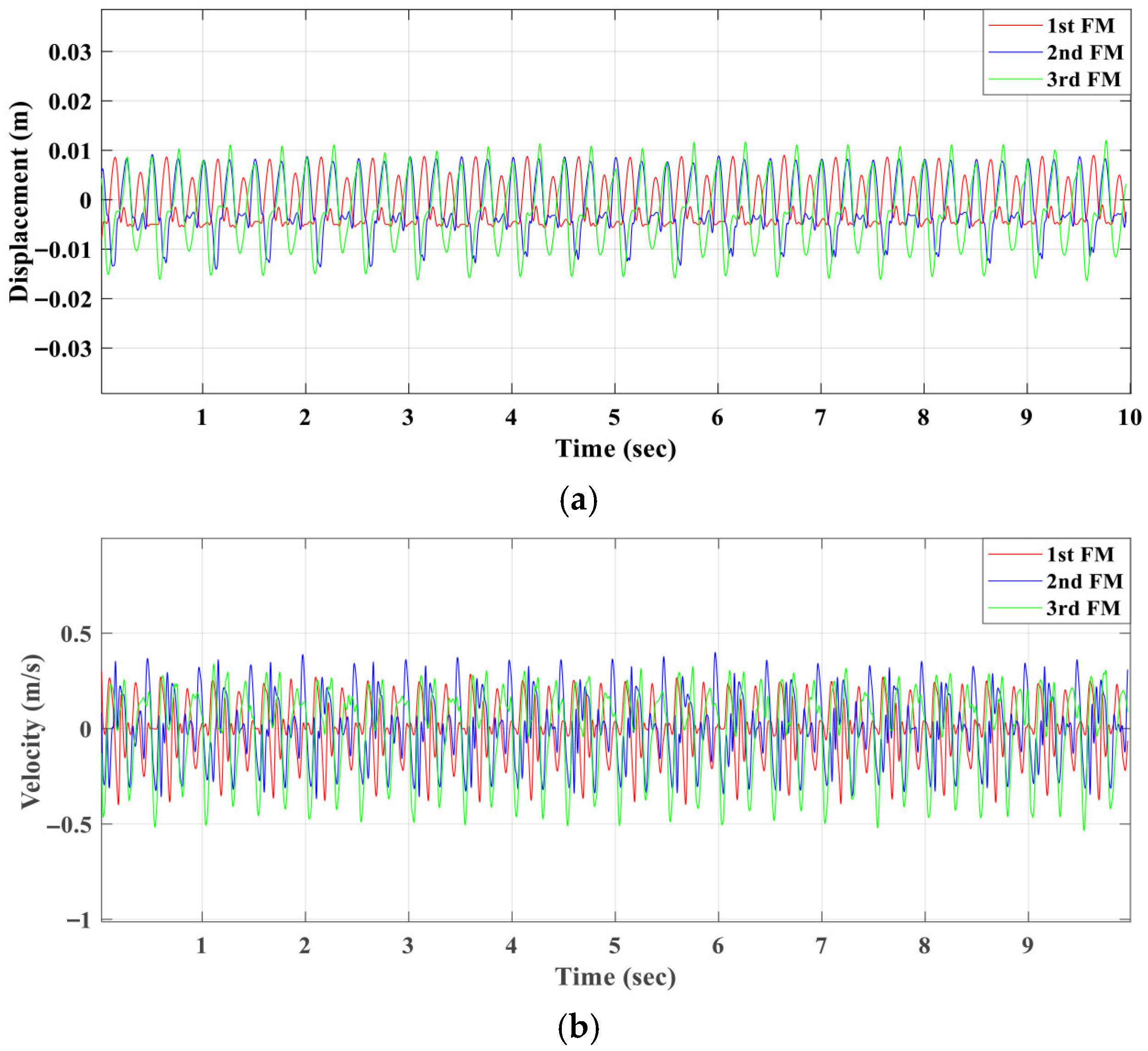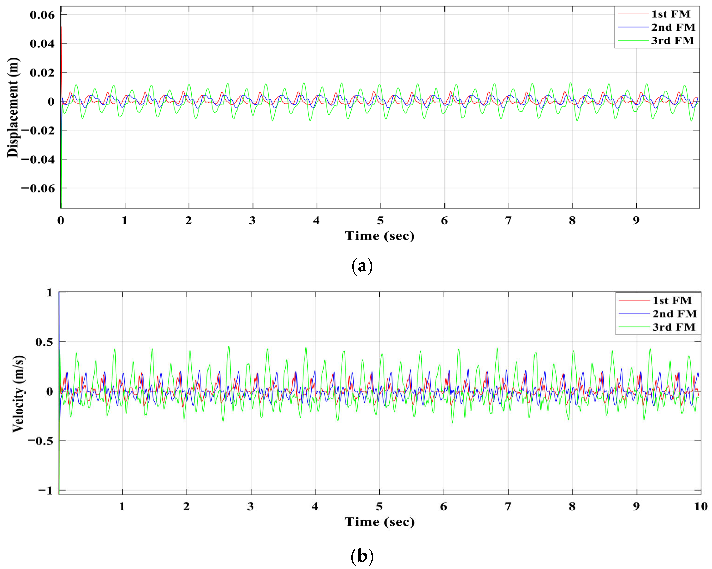 Table 2. The natural frequencies for the mechanical parts were 69.24 rad/s, 47.77 rad/s and 34.58 rad/s. The natural frequencies of the mechanical part were nearly similar with or without electrical-mechanical coupling.