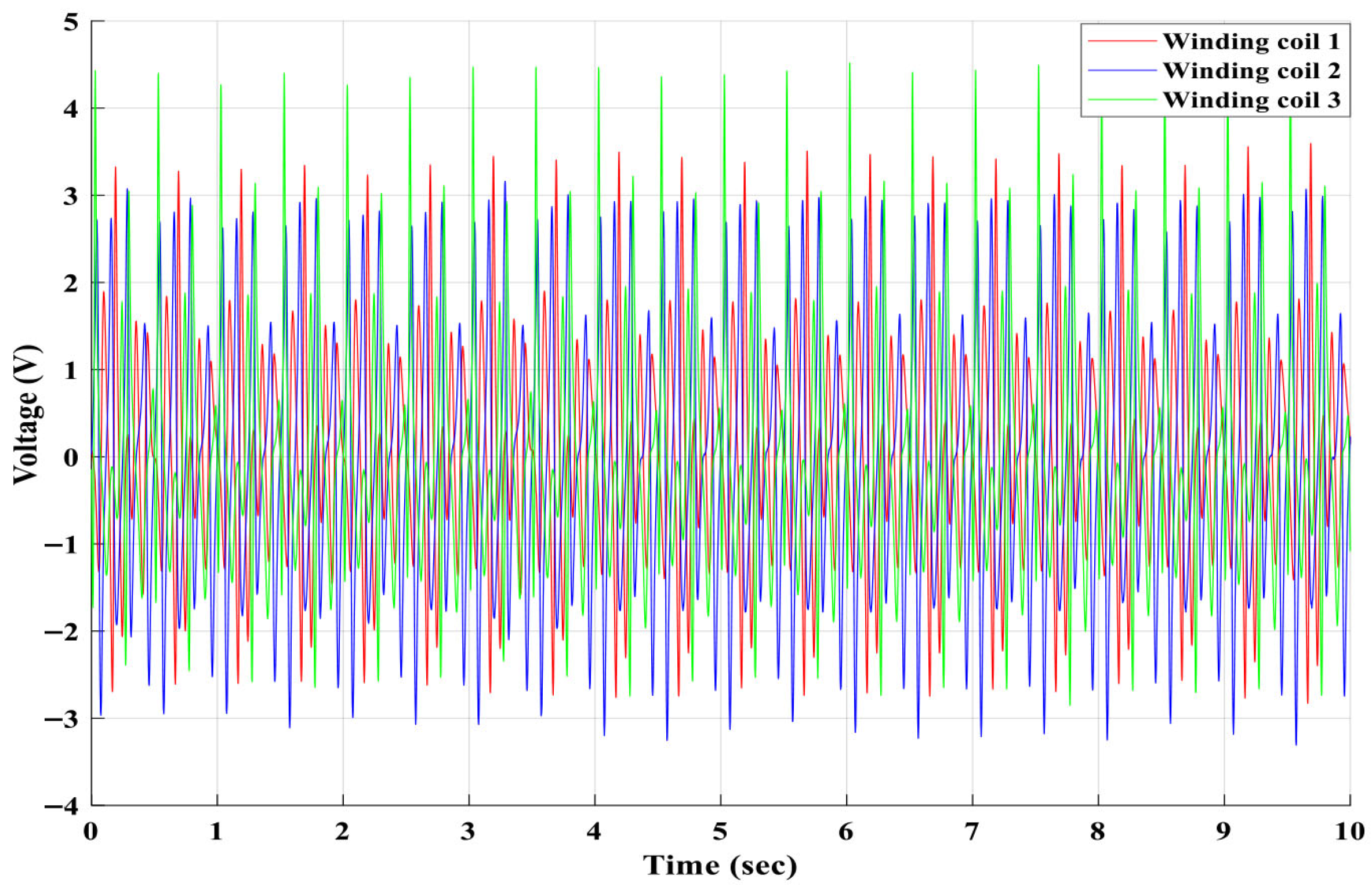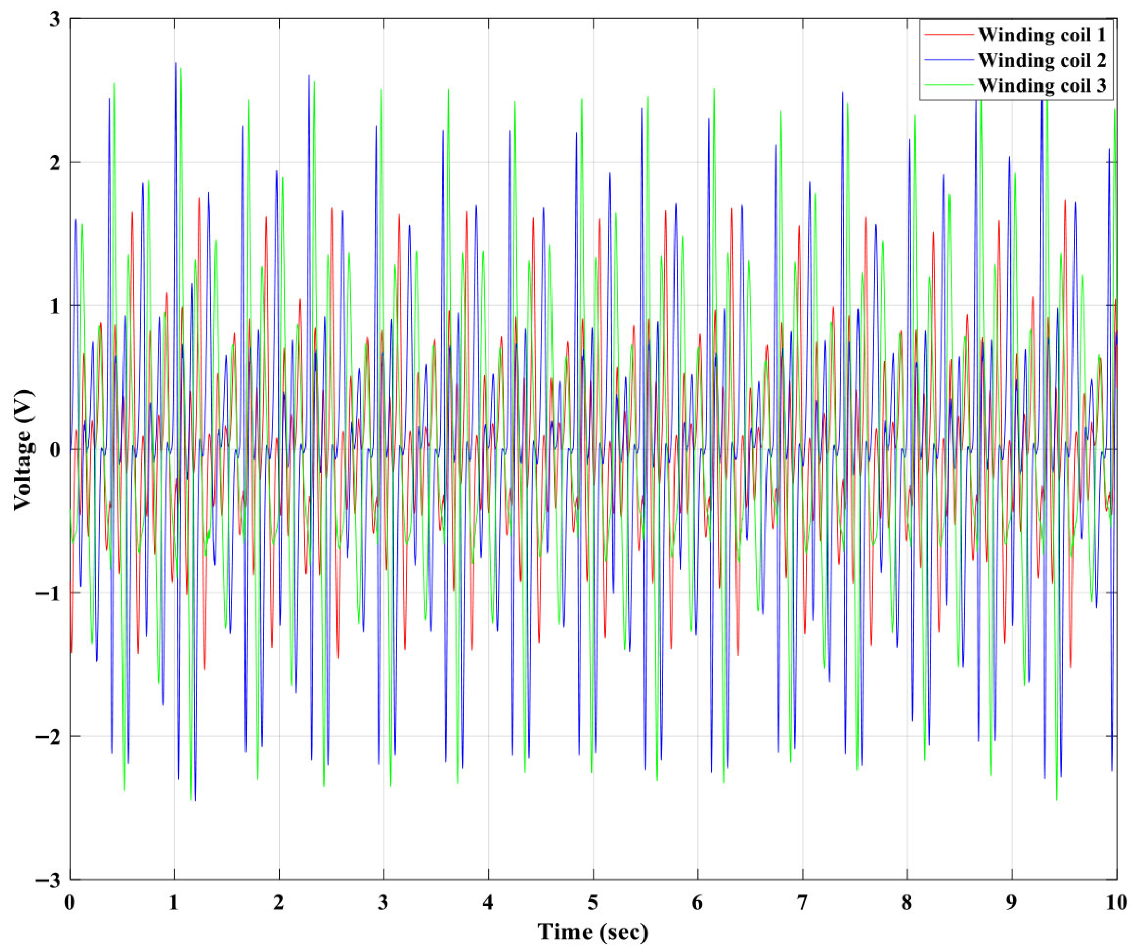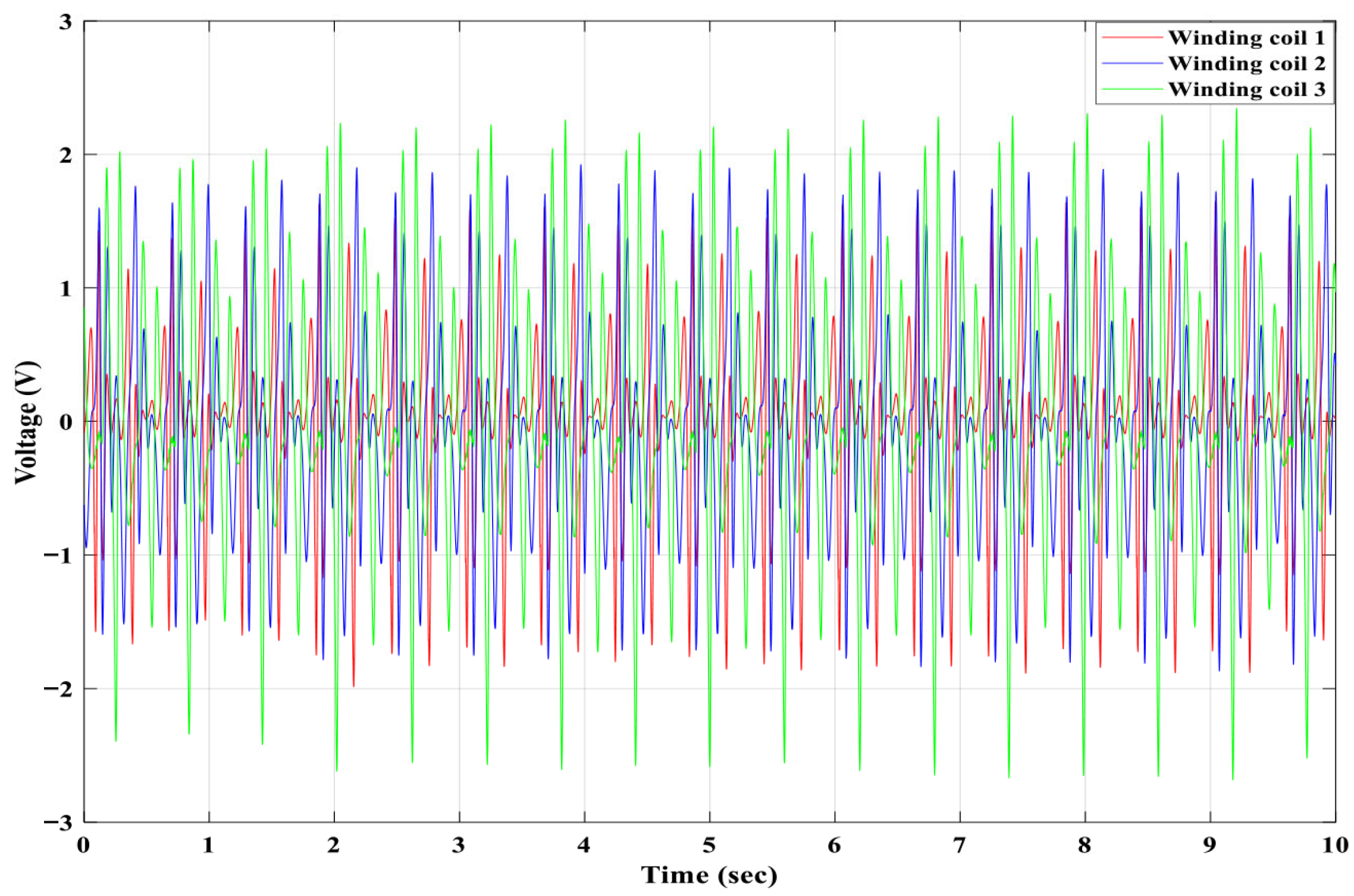 Figure 21. The winding coil 3 generated a higher induced voltage than the winding coils 2 and 1.