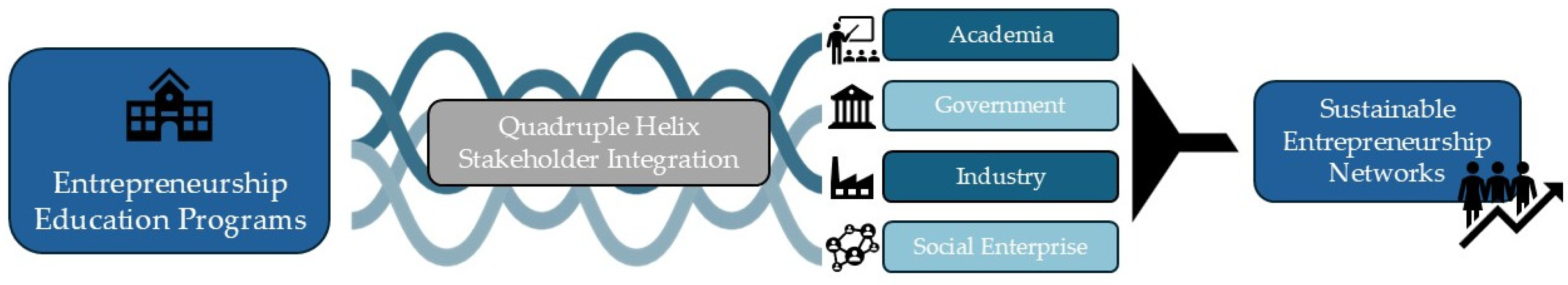 | Entrepreneurial Sustainability and Resilience | Educational program impact on business development and sustainability [17,24,42,47,48,49,50] |