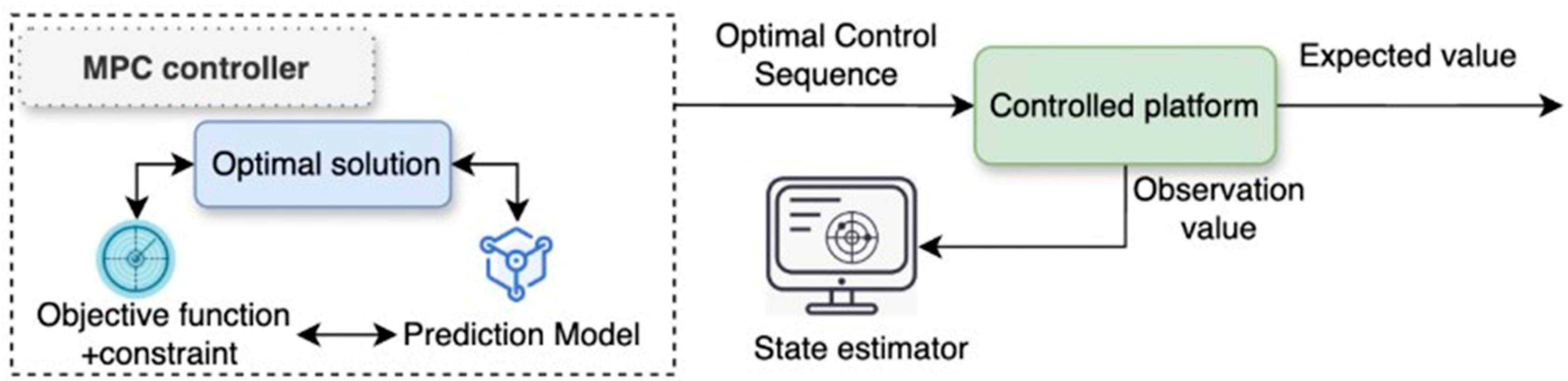 The current state is then fed into the MPC prediction model, which performs receding-horizon simulation over a finite horizon