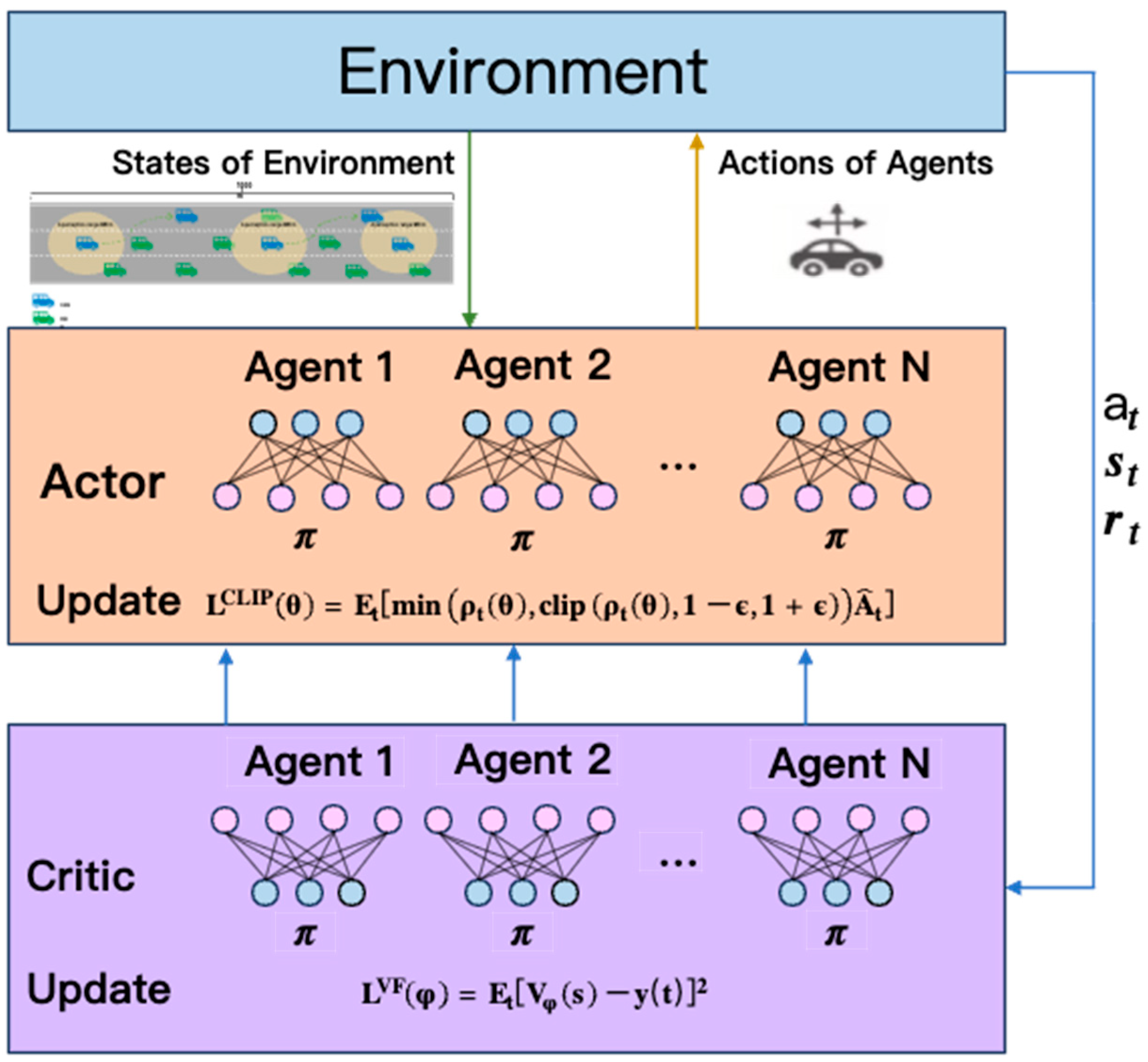 denotes the target value. The overall structure of the MAPPO algorithm is illustrated in