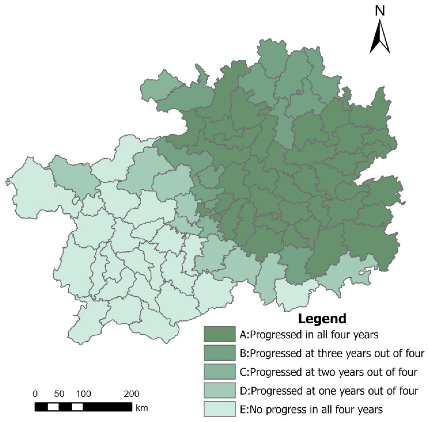 3.1.2. County-Level Multidimensional Assessment of the Distribution