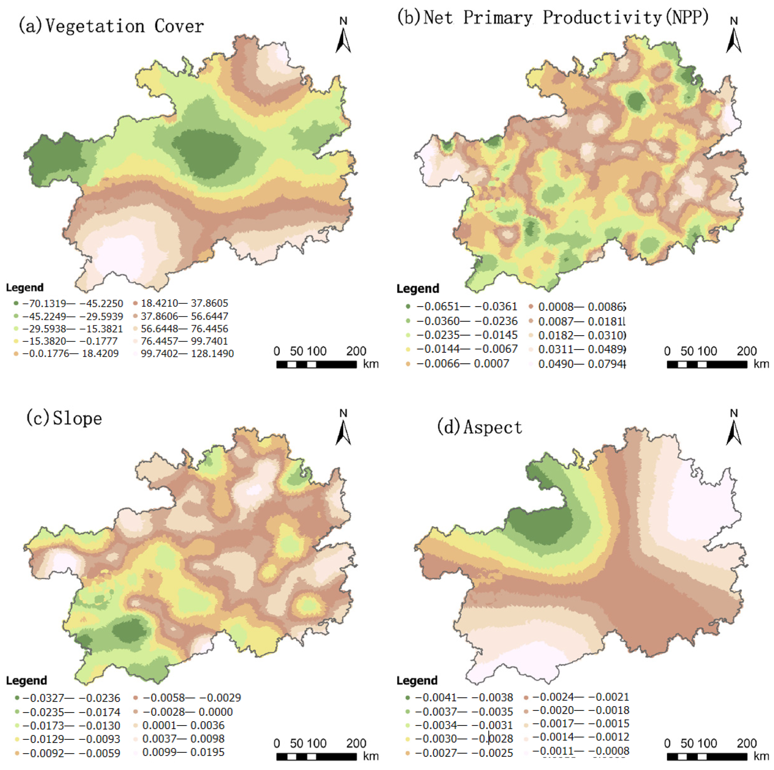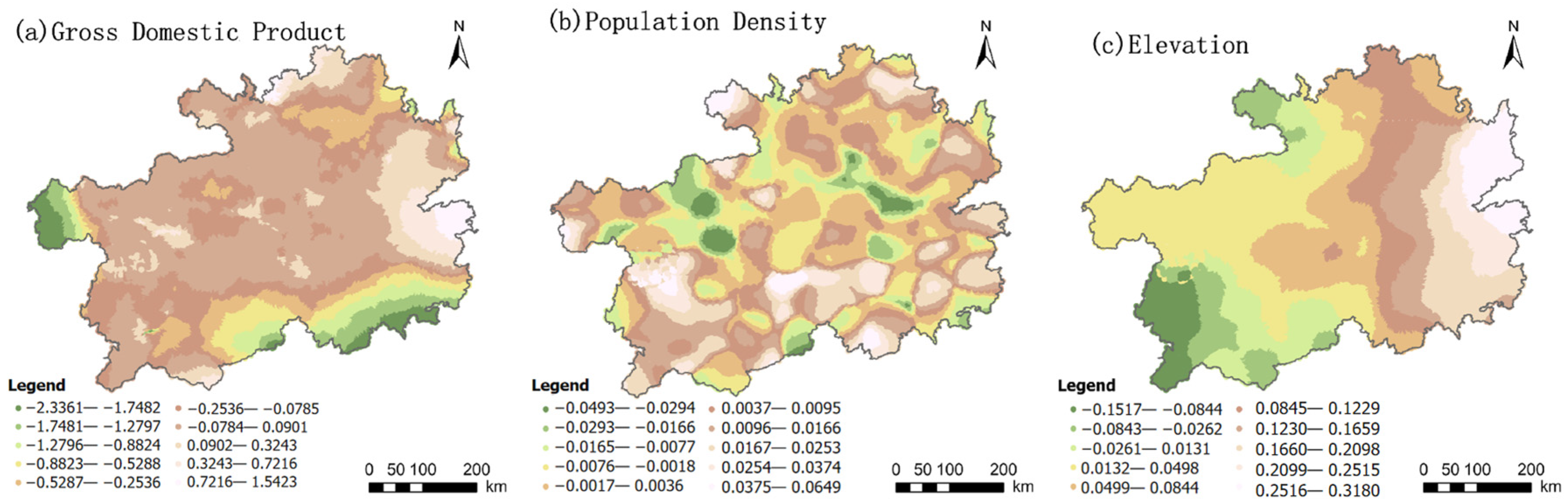 4.3. Multiscale Spatial Heterogeneity of Influencing Factors