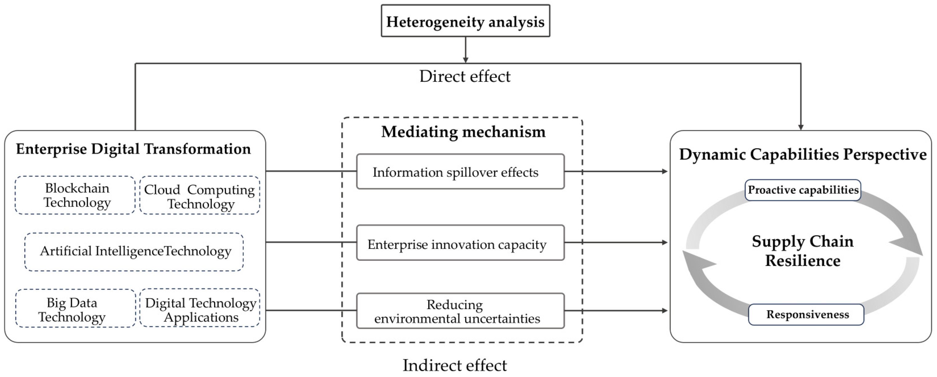Chicago/Turabian StyleLi, Xufang, Zhuoxuan Li, and Yujiao Cao. 2025. "Study on the Impact Mechanism of Enterprise Digital Transformation on Supply Chain Resilience" Sustainability 17, no. 24: 10945. https://doi.org/10.3390/su172410945