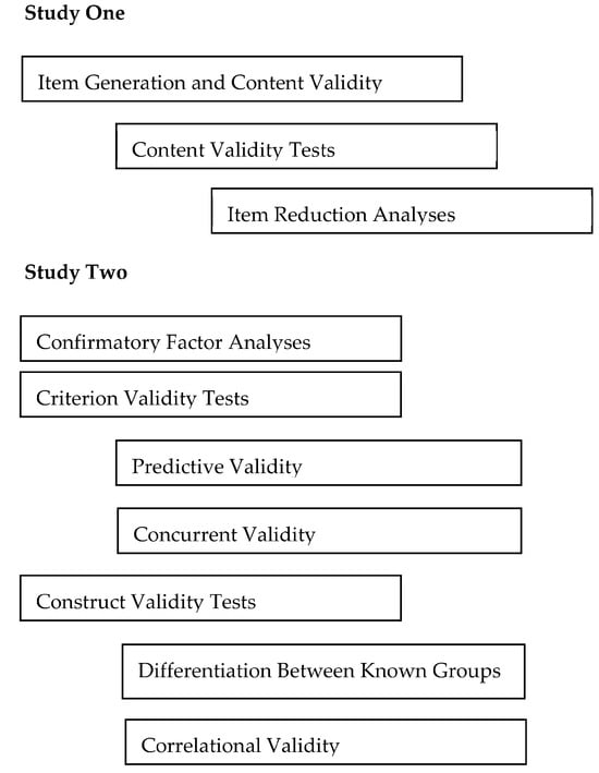 The current paper describes the development of a new measure, the Sustainability Attitude Scale (SAS), that captures one’s comprehensive sustainability attitude comprising ecological, economic, and social well-being elements. This rigorous, multi-step validation process was designed to directly follow Boateng et al.’s best practices for scale development and validation [30]. See Figure 1 for a conceptual diagram of this research. Study One addresses the construct and content validity issues in previous attempts to develop the SAS [31]. This process included refining the pool of possible items and testing these with a more representative sample, which provided the necessary statistical power to create a valid and reliable measure.