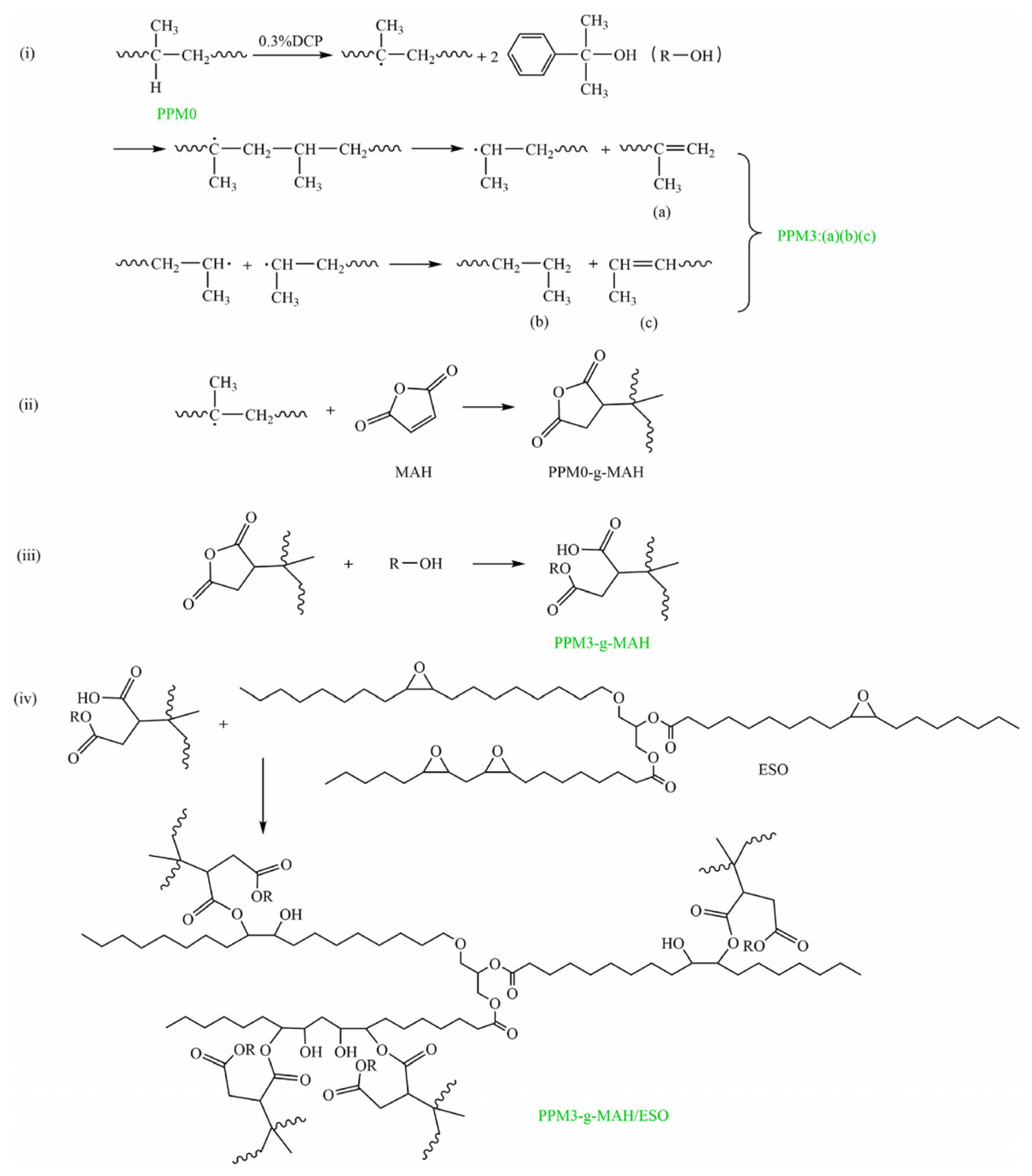 - Zhang, W.; Hao, X.; Fan, C.; Zhang, S.; Ma, D.; Yu, X.; Fu, Z.; Feng, G. Effect of Polypropylene Grafted Maleic Anhydride (PP-G-MAH) on the Properties of Asphalt and its Mixture Modified With Recycled Polyethylene/Recycled Polypropylene (RPE/RPP) Blends. Front. Mater. 2022, 9, 814551. [Google Scholar] [CrossRef]