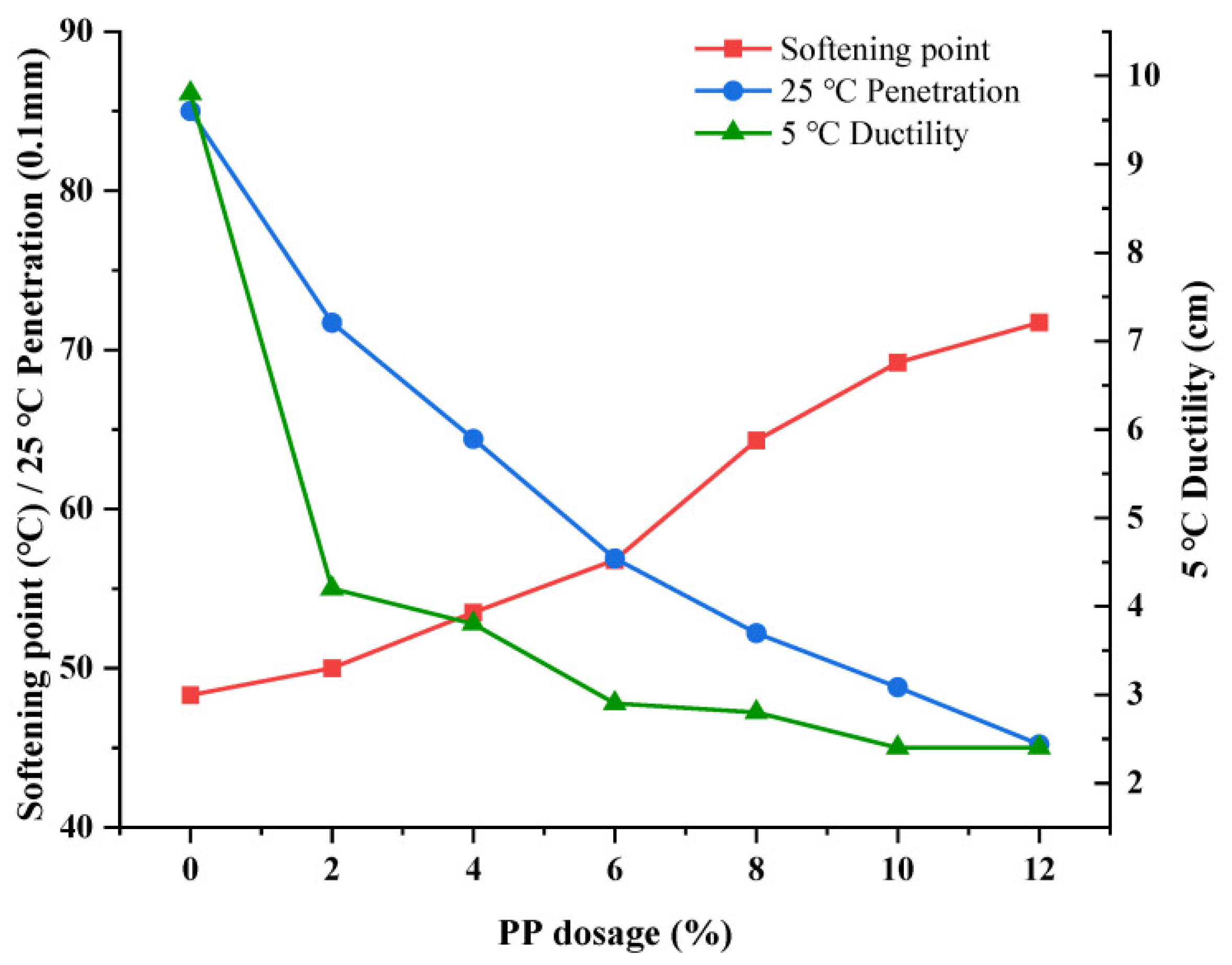 3.2.1. Softening Point and Penetration of WPP-Modified Asphalt