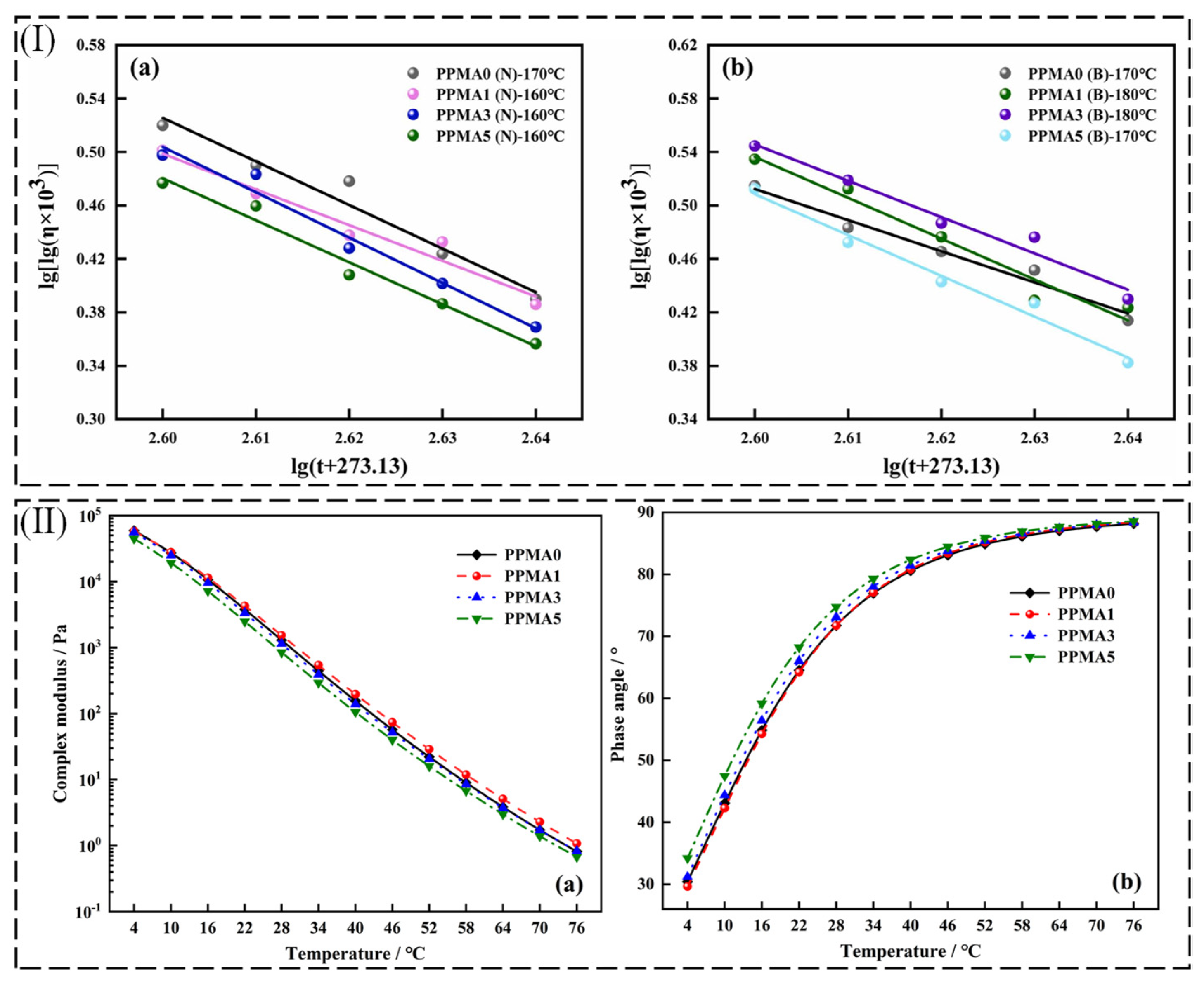 - Liu, J.; Hao, P.; Sun, B.; Li, Y.; Wang, Y. Rheological Properties and Mechanism of Asphalt Modified with Polypropylene and Graphene and Carbon Black Composites. J. Mater. Civ. Eng. 2022, 34, 04022343. [Google Scholar] [CrossRef]