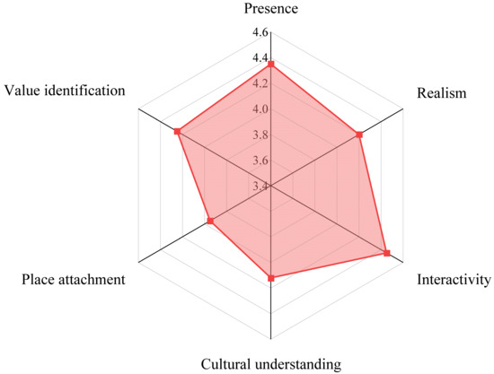 Before conducting group comparisons, the internal reliability of the measurement scales was examined. Cronbach’s α values were 0.86 for immersion, 0.82 for cultural identity, and 0.89 for learning assessment, indicating good internal consistency.
