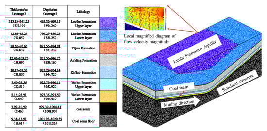 - Miao, K.; Tu, S.; Li, W.; Li, J.; Tian, J.; Zhao, H.; Ma, J. Effects of Lithology Combination Compaction Seepage Characteristics on Groundwater Prevention and Control in Shallow Coal Seam Group Mining. Appl. Sci. 2025, 15, 6942. [Google Scholar] [CrossRef]