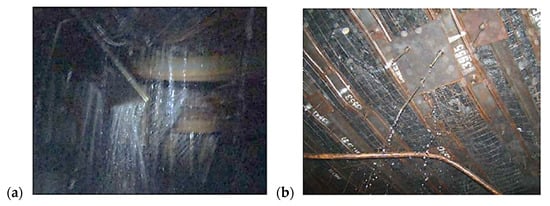 In site roof water inflow pictures: (a) original; (b) after implementing control measures.