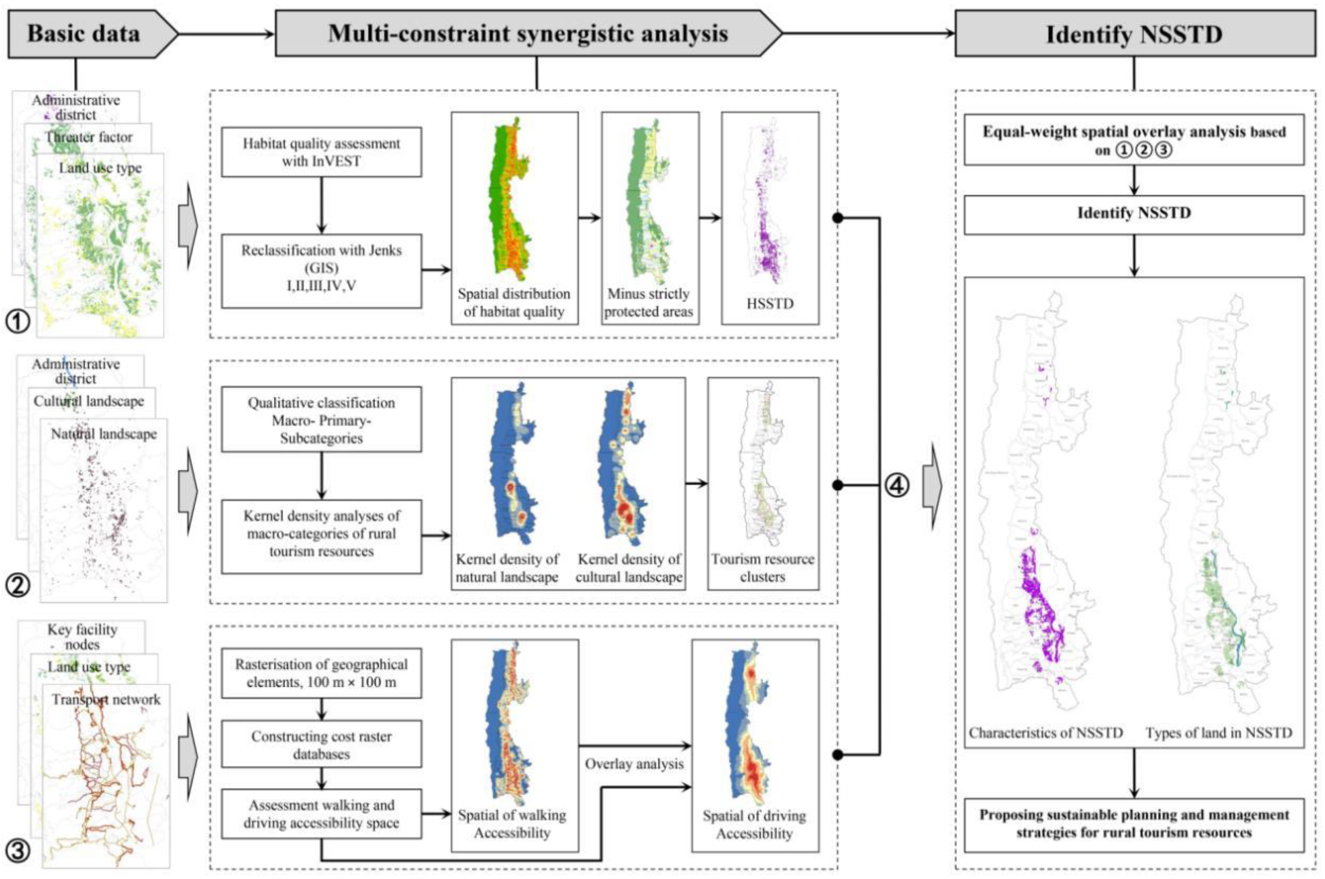 - Habitat Quality Constraint: This constraint operationalizes ecosystem service theories via the InVEST model to assess the Habitat Space Suitable for Tourism Development (HSSTD).
