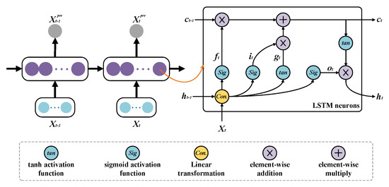 Afterward, the forecasting variables are derived through the fully-connected layer, calculated by . All the weight matrix and bias can be computed by the Adam optimizer, and the performance of the LSTM module is evaluated by mean absolute error (MAE) between the actual and forecasted values as follows: