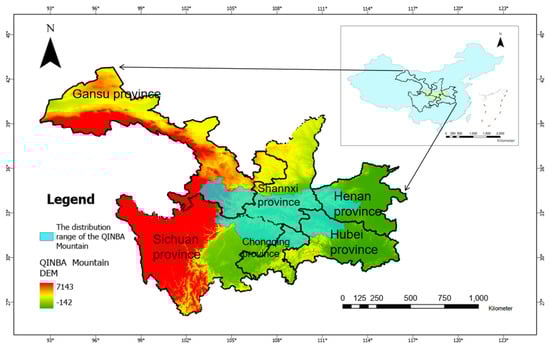 The study area encompasses the southern region of Shaanxi Province, the southeastern part of Gansu Province, the northern portion of Sichuan Province, the western section of Henan Province, the northern area of Hubei Province, and the northeastern region of Chongqing Municipality (Figure 1). The total land area covers approximately 280,000 square kilometers. The Qinba Mountain Region, the core geographical entity of the study area, is primarily composed of the Qinling Mountains in the north and the Daba Mountains in the south. This region forms an arc-shaped structural belt resulting from the east-west trending Qinling Mountains and the northwest-southeast oriented Daba Mountains. The Qinling Mountains, situated in the northern part of the study area, are characterized by mid-to-high mountainous terrain with elevations ranging from 1500 to 3000 m. The topography is marked by steep slopes and deeply incised valleys. In contrast, the southern part of the study area corresponds to the Daba Mountains, where the dominant landforms are low to mid-high mountains with elevations between 800 and 2000 m and relatively gentle slopes. Intermontane river valleys and basins, with elevations of 400 to 800 m, exhibit relatively flat terrain. The climate of the region lies within a transitional zone between the subtropical monsoon climate and the warm temperate monsoon climate, exhibiting notable spatial heterogeneity. The mean annual temperature ranges from 12 °C to 16 °C, with January averages between −2 °C and 3 °C and July averages from 22 °C to 28 °C. Annual precipitation varies from 700 to 1200 mm, with 70% to 80% occurring between May and September, often accompanied by heavy rainfall events. Land use is predominantly forested, accounting for over 50% of the total area. Terraced fields are primarily developed through the conversion of forested land or the modification of sloping cropland. The region functions as a traditional agricultural zone, with major crops including rice, maize, and tea. The rural population was estimated at approximately 18 million in 2020.